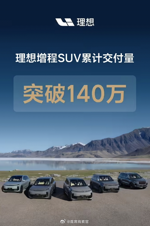 理想增程 SUV 累计交付突破 140 万。还有谁?308_IO新能源汽车理想汽