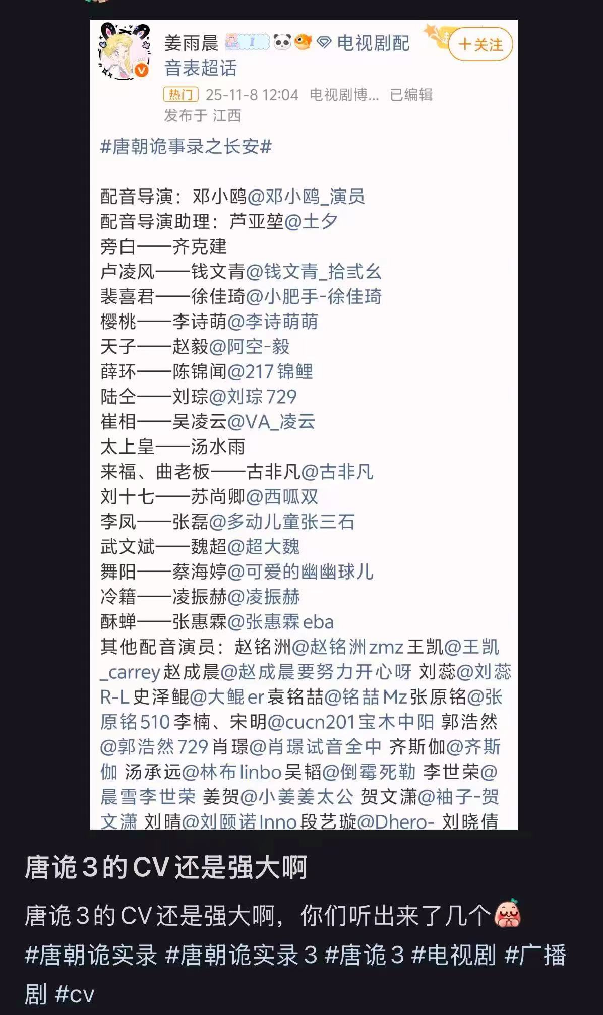 唐朝诡事录配音阵容唐朝诡事录cv阵容 唐朝诡事录配音阵容,好多老熟人啊!