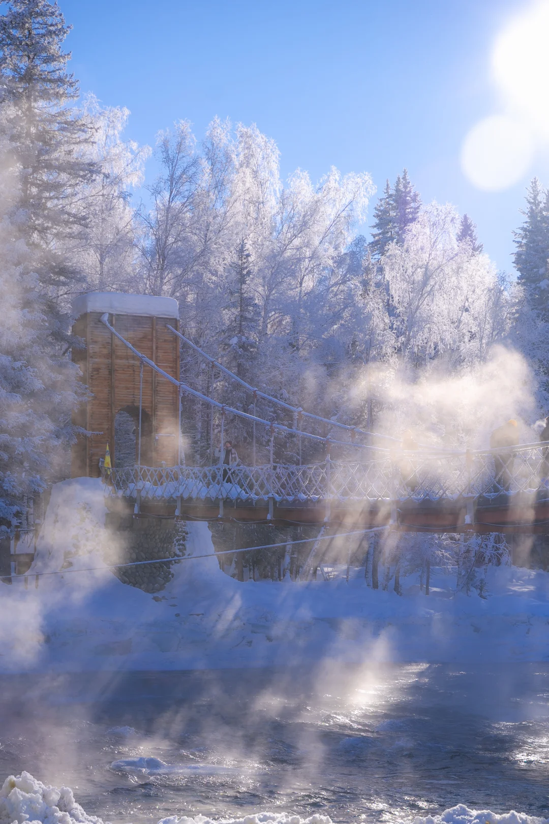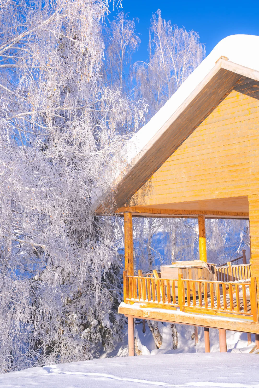 整个禾木都超级美!村子里的小木屋屋顶堆积厚厚的雪,阳光下闪闪发光,这就已经是童话世界💙