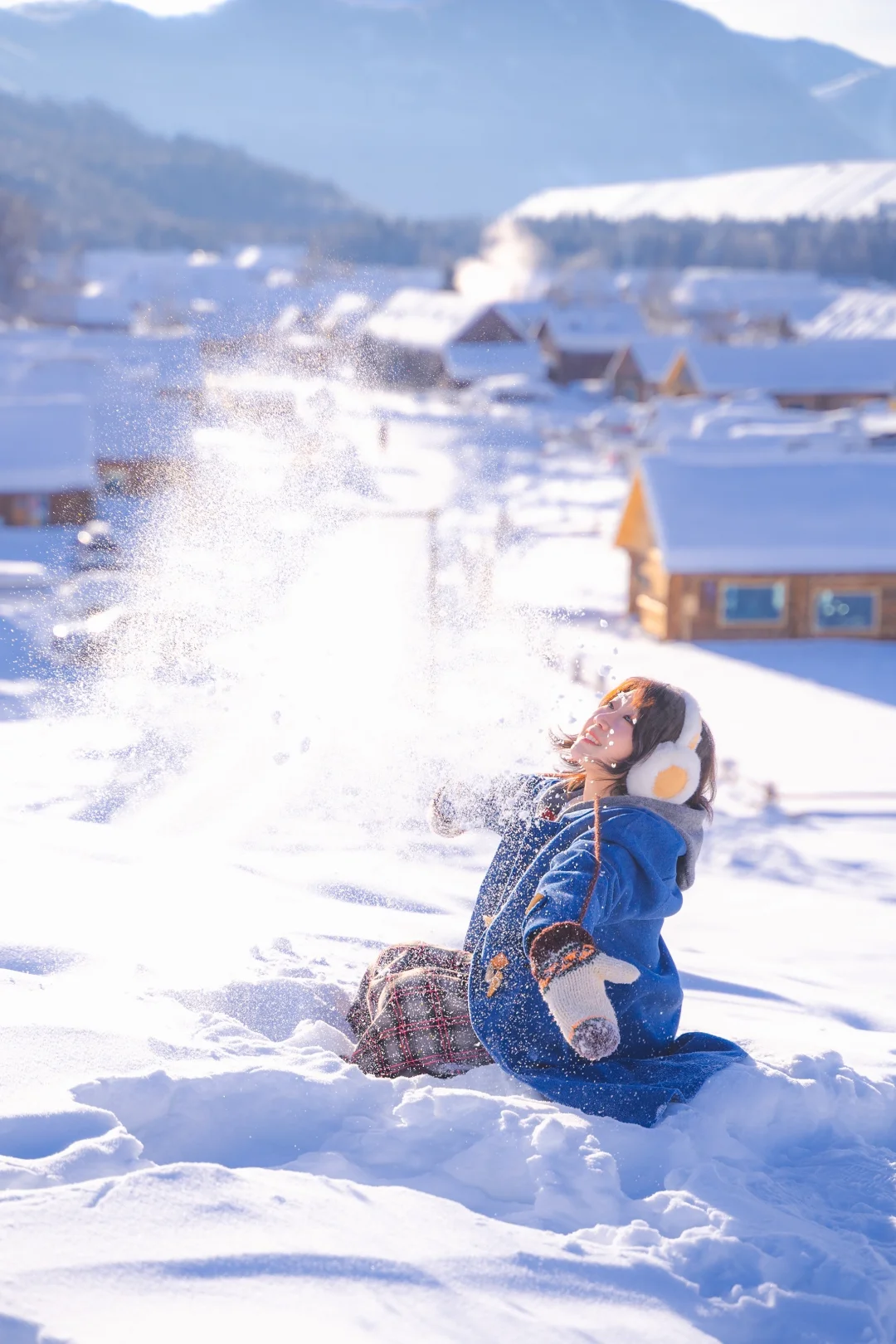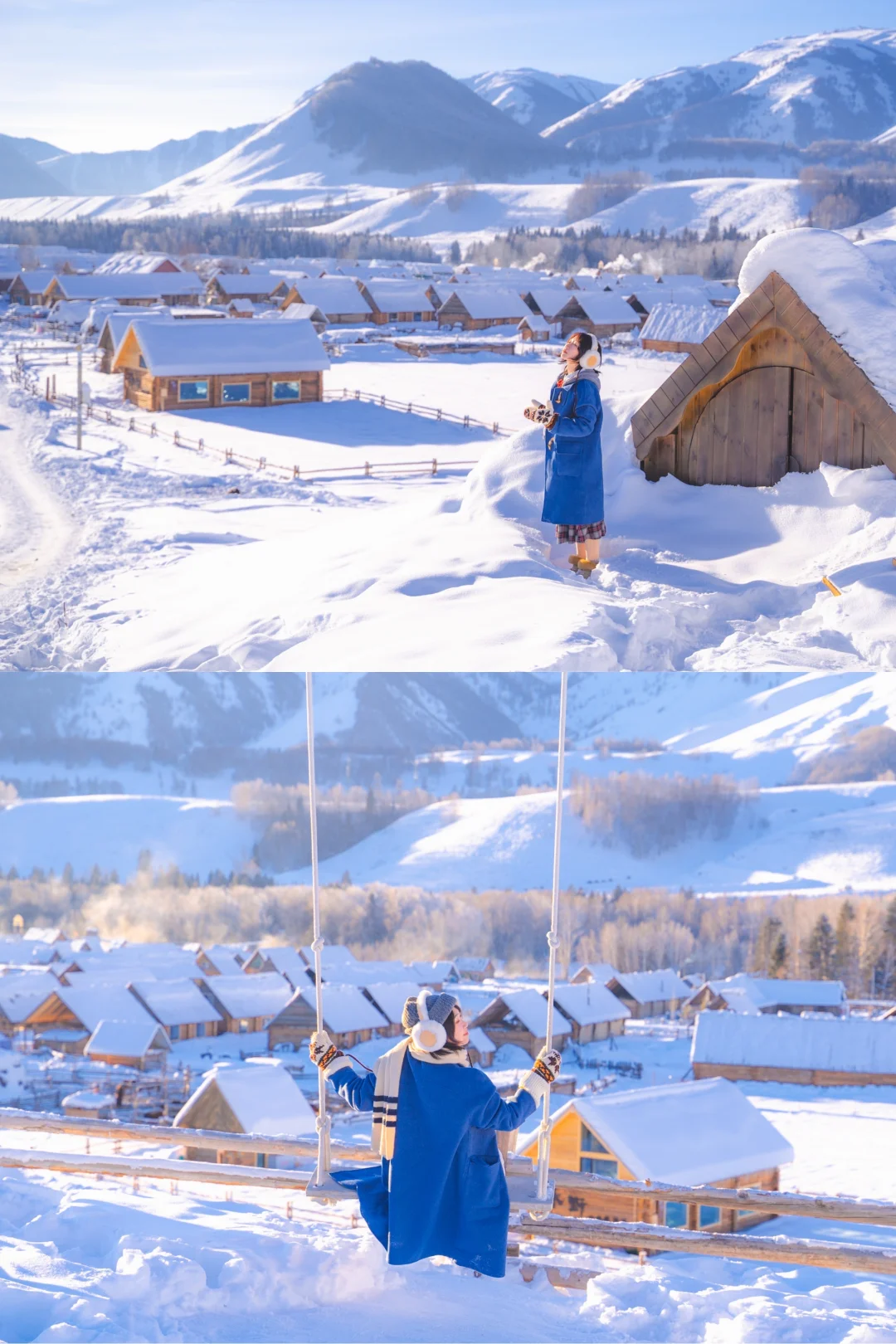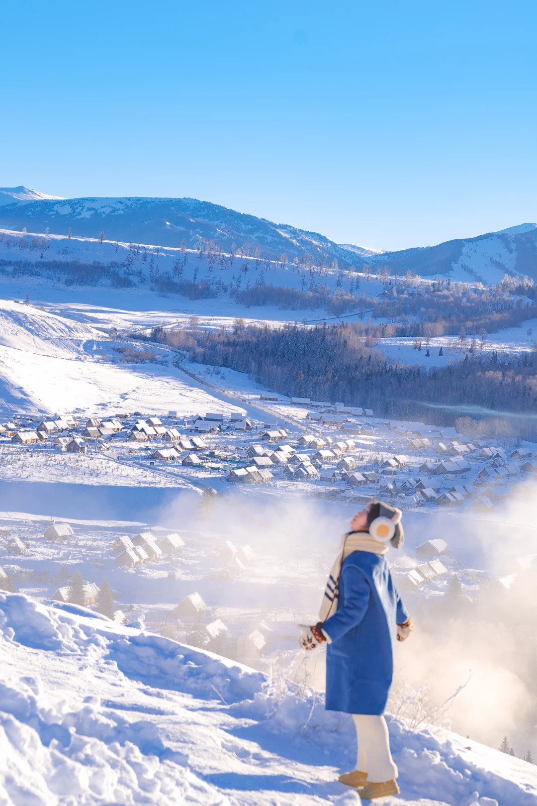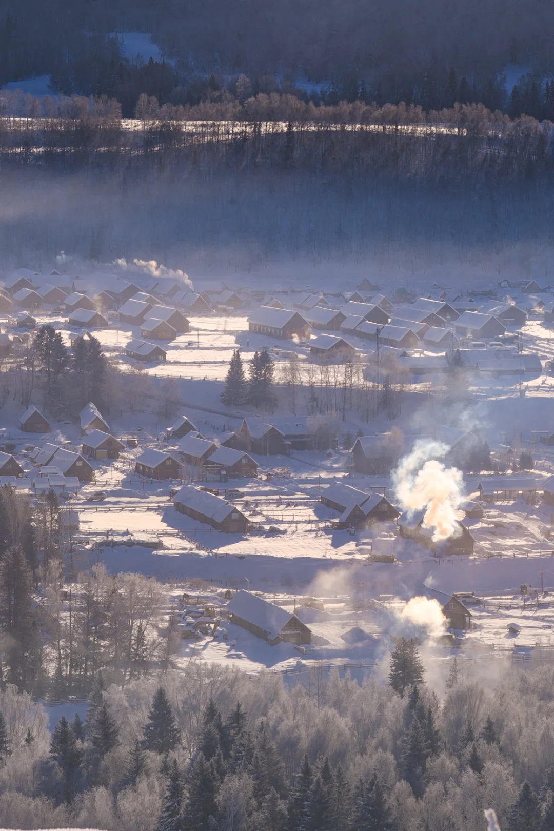 而且新疆冬季本身就是接近10点才日出,想要拍摄效果更好需要等阳光打到村子后,大概需要11点后,所以不用早起也能享受美景,很爽~