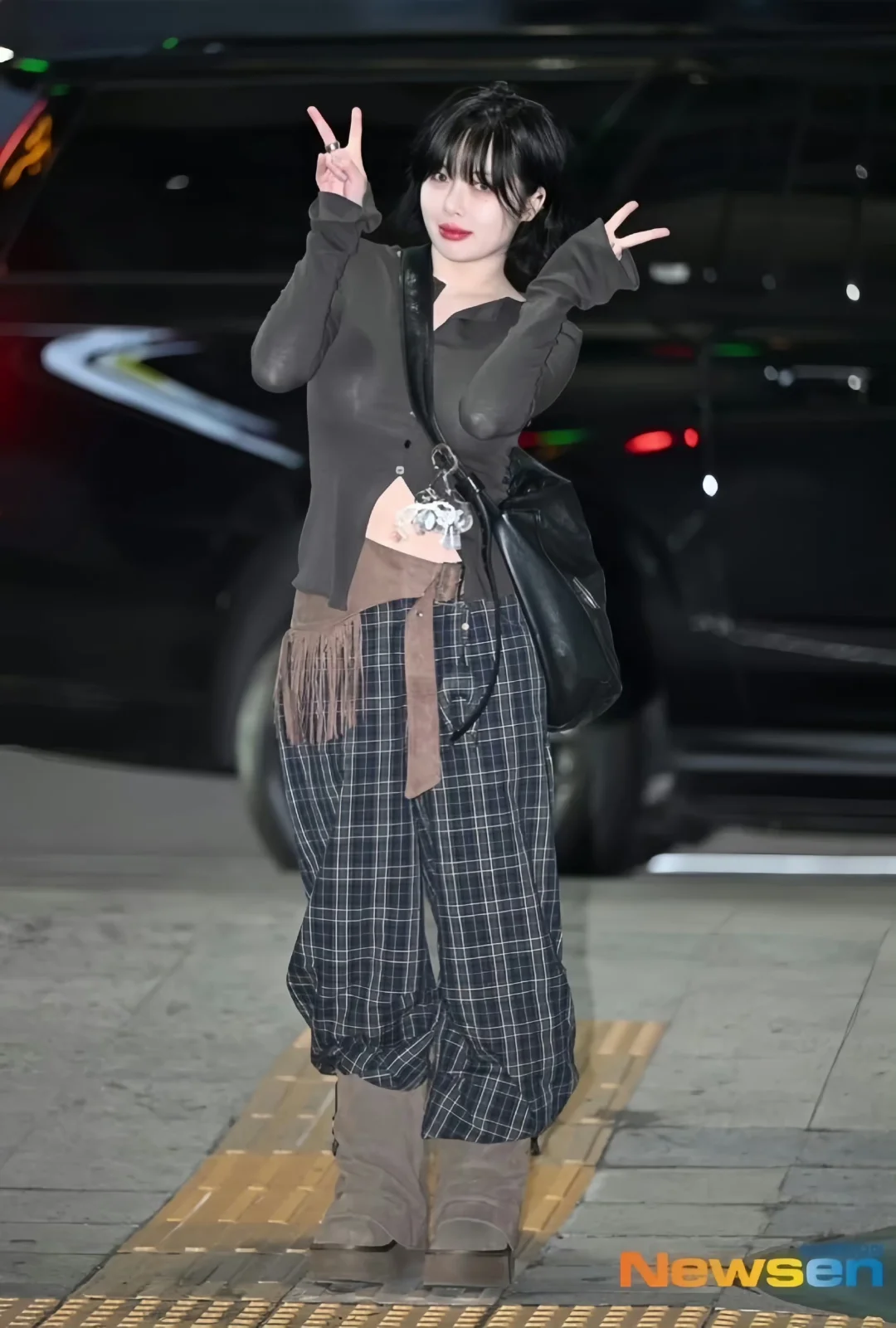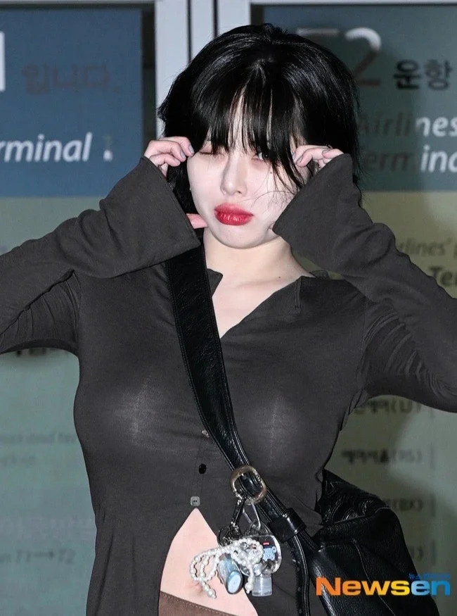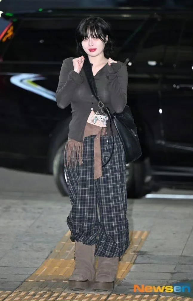 泫雅机场路透!49kg状态好绝复古叠穿辣到我