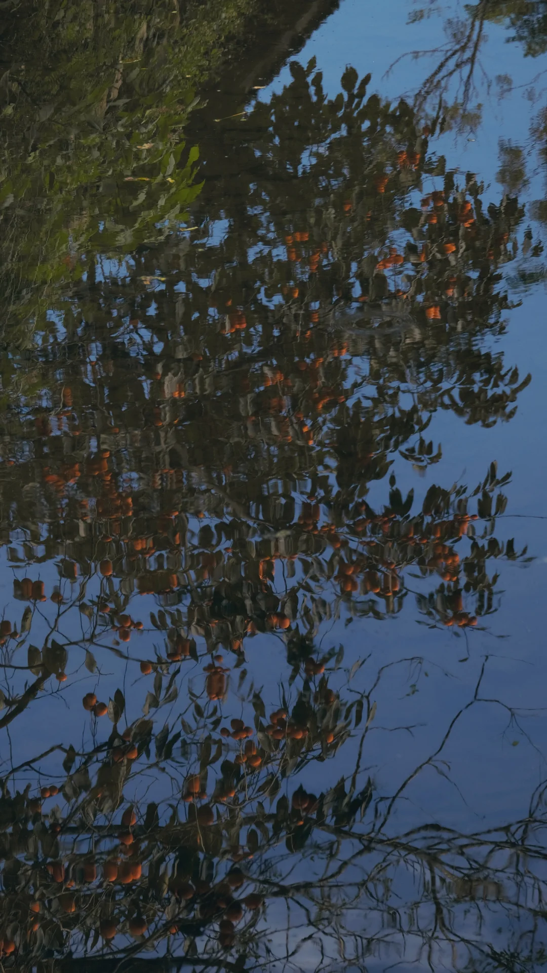 柿子与马头墙、水榭亭台相映成趣,景色层次感极强,每一步都像走在画里。