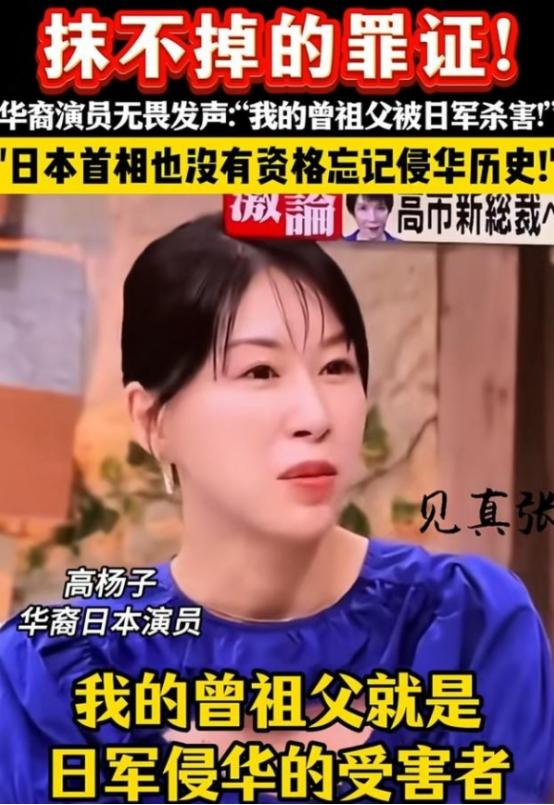 华裔日本演员高杨子,在日本电视台访谈节目中直言:我的祖父亲眼看到曽祖父被日本侵略
