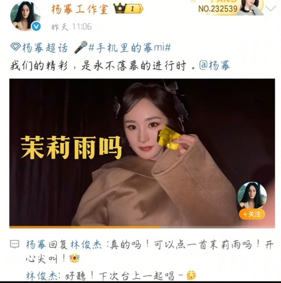 杨幂[超话]杨幂林俊杰约唱茉莉雨杨幂复刻林俊杰茉莉雨封面哇哦!你俩合唱,那我可就
