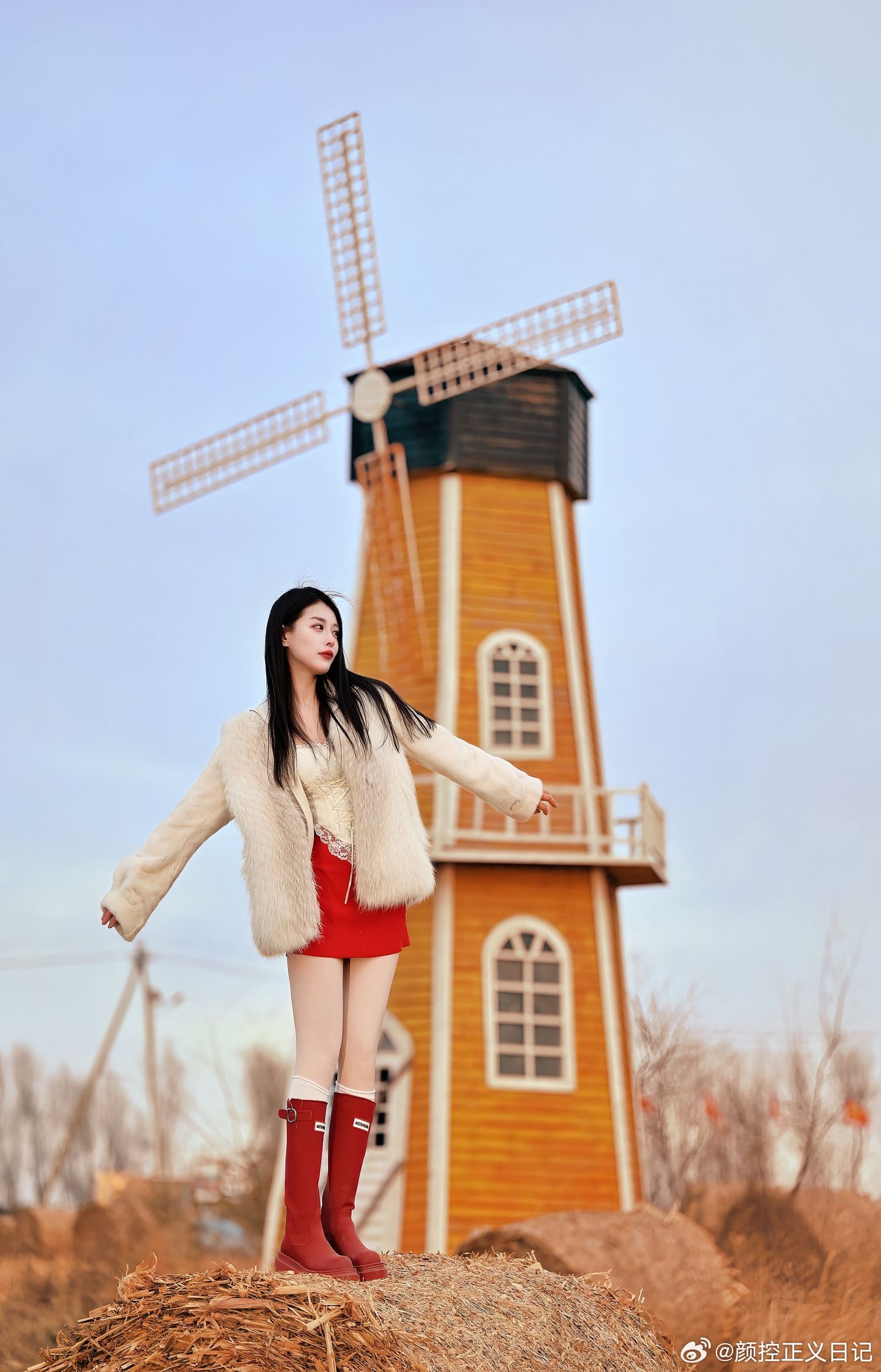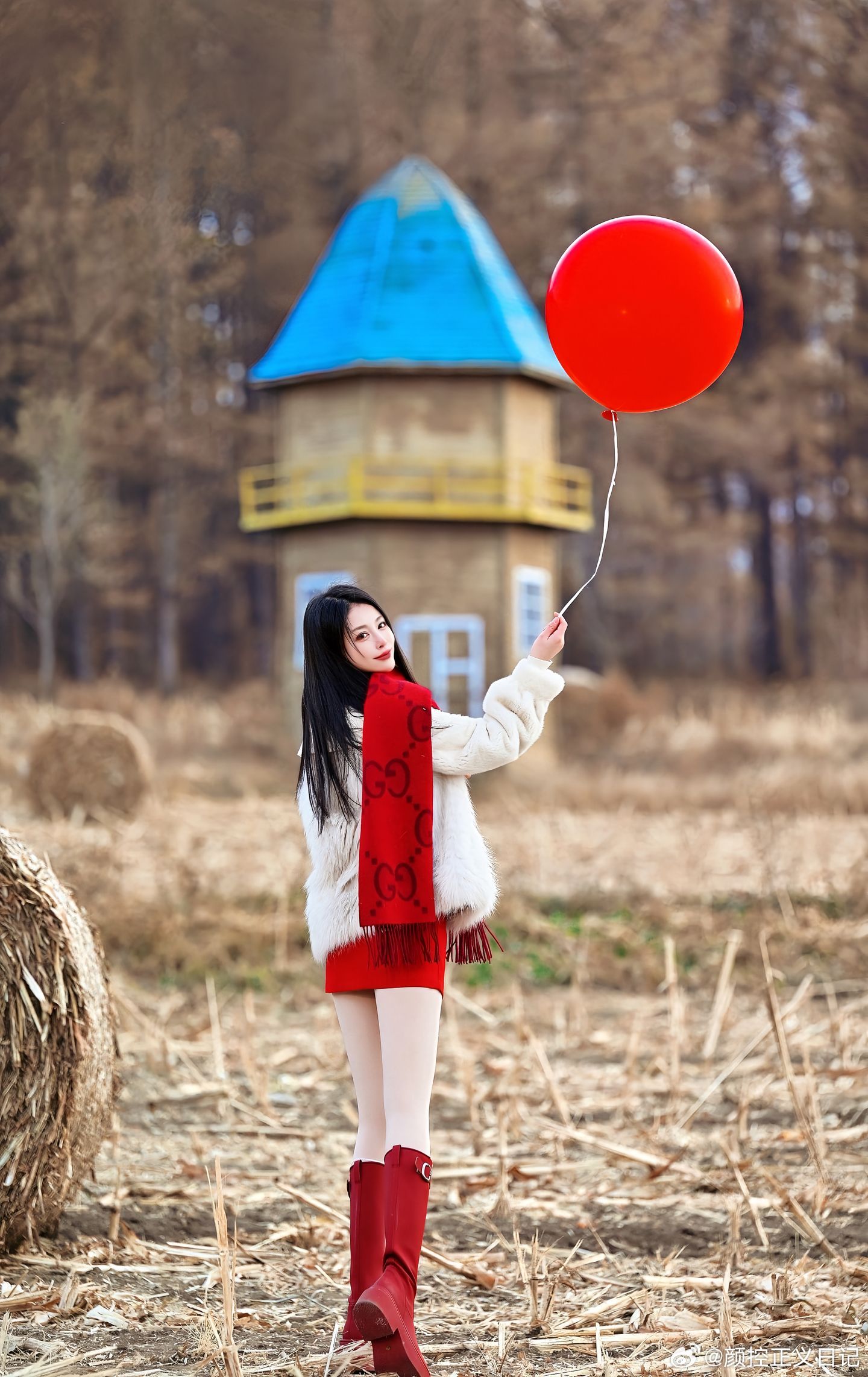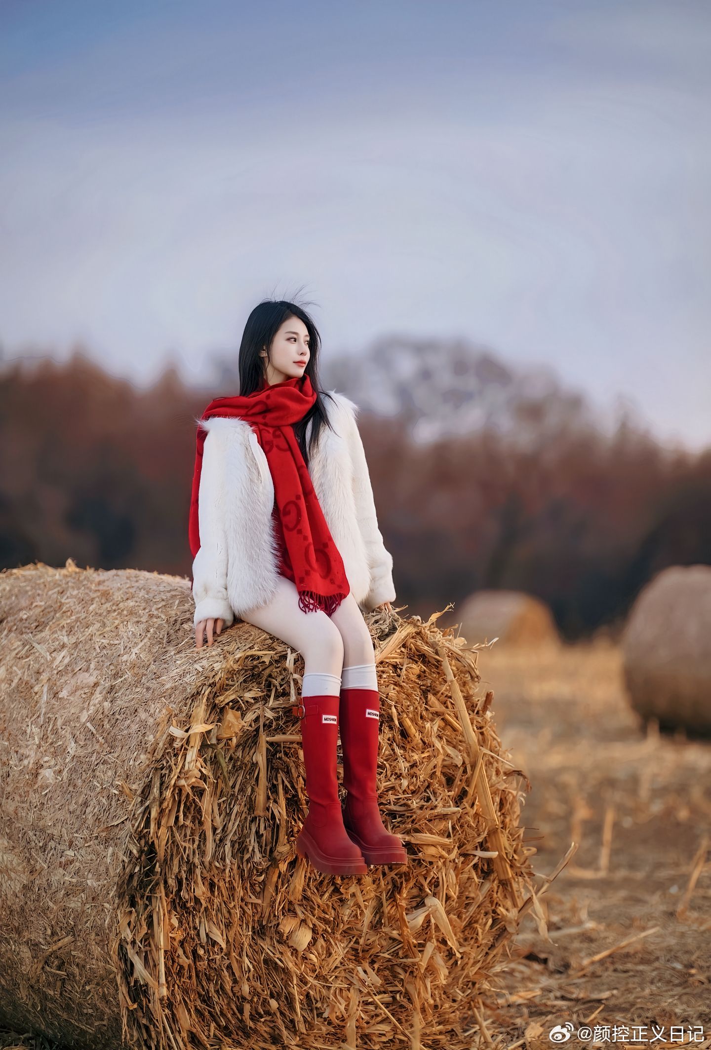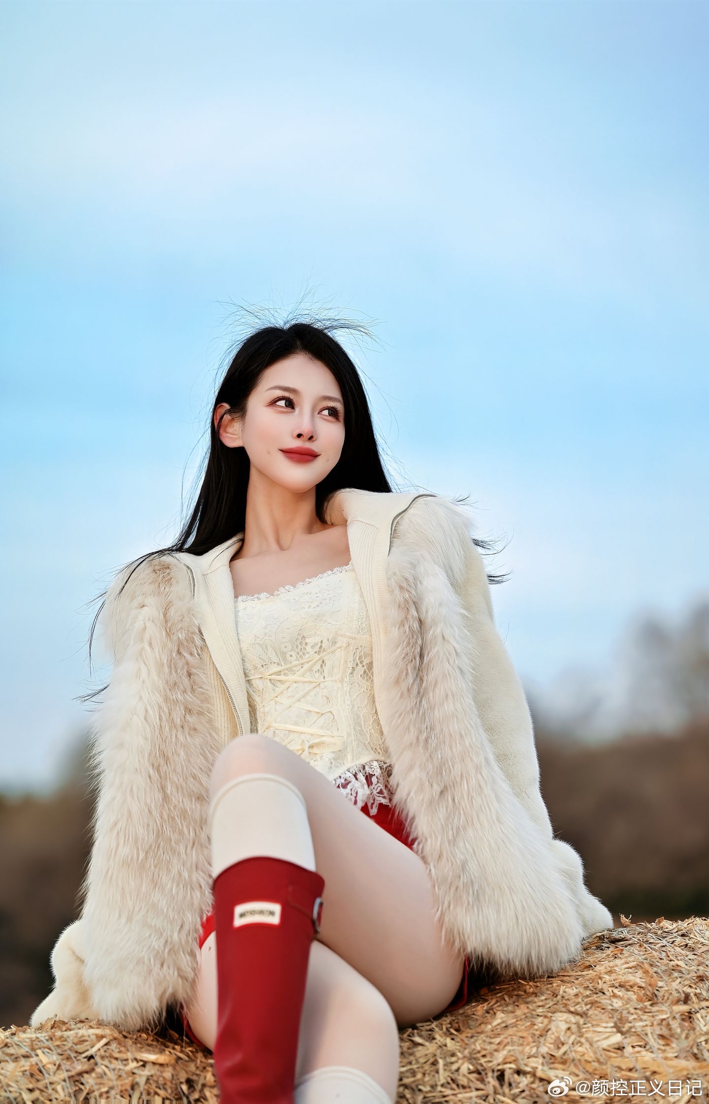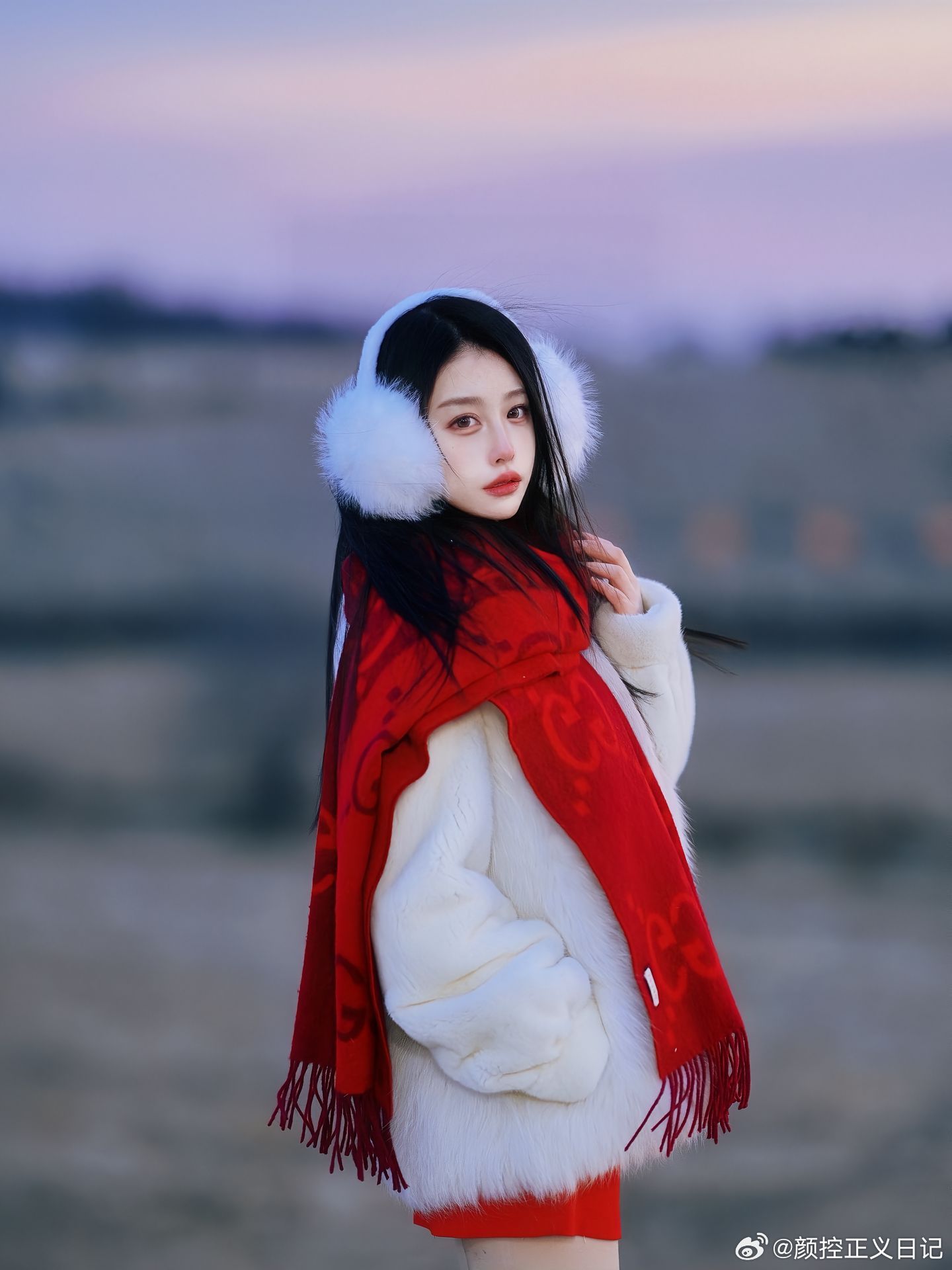 时尚穿搭[超话] 白色羽绒,配红色穿搭美女精彩人像[超话]