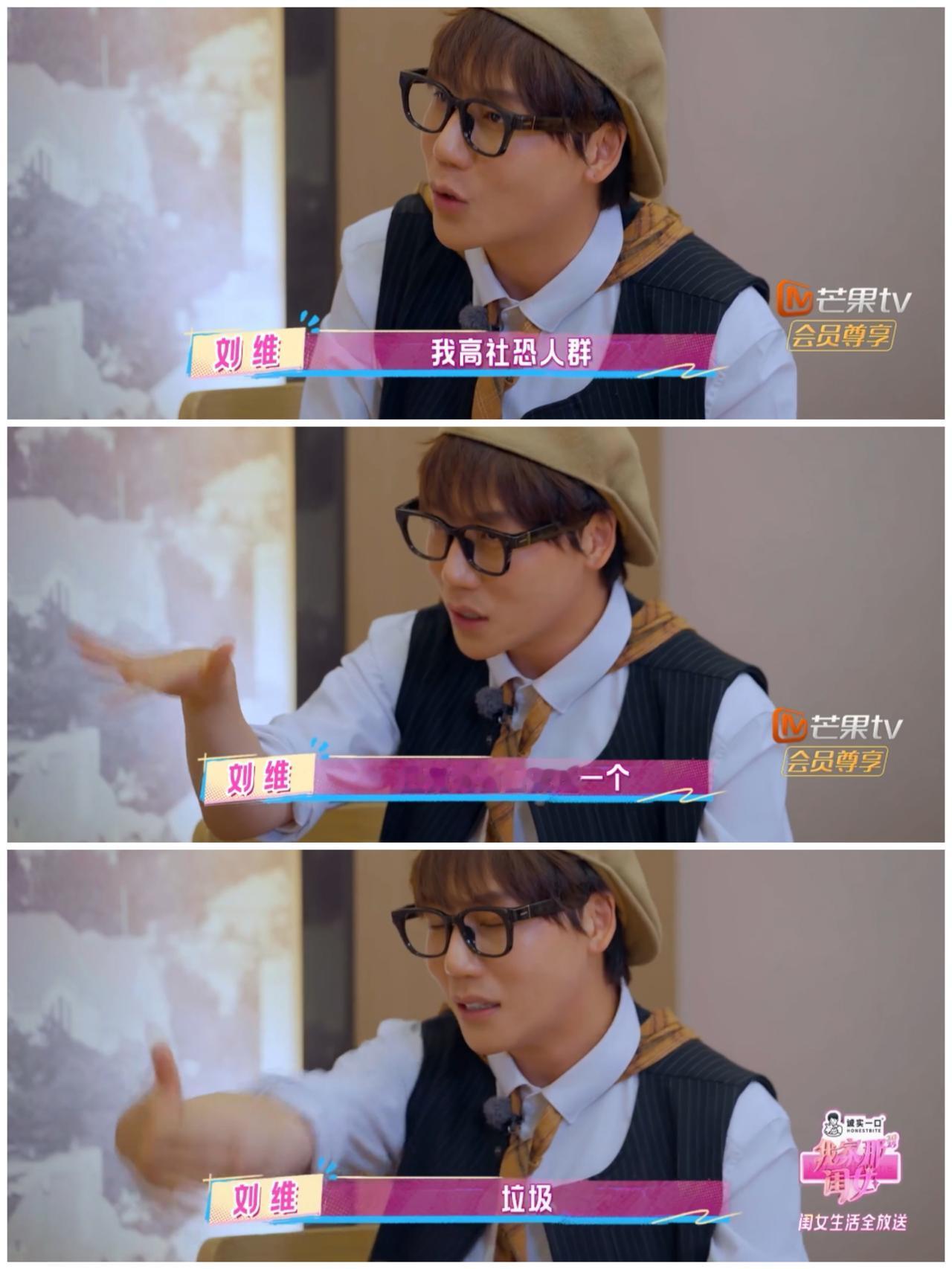 刘维坐飞机偶遇何炅 他假装没看到, 何炅却 早已发现了他。 刘维给网友的印象是 超级“社牛”的人。 但是刘维跟管乐饭桌聊天, 他坦言坐飞机, 偶遇何炅, 但是他心想何炅在私人时间, 是否不愿意被打扰呢? 于是他就选择默默坐下了。 没有想到的是, 何炅特意发信息给他, 指出刘维飞机座位信息, 吓得刘维赶紧过去打招呼, 解释原因。 网友都知道刘维和何炅 多次合作《快乐大本营》 和《百变大咖秀》, 已经算是熟人了, 但是刘维都不敢在私下时间, 跟何炅打招呼, 可见他是有多社恐呀。 特别是他有一次和妈妈逛街 遇到合作过的宋丹丹, 为了不过去打招呼, 特意躲到厕所里, 等宋丹丹走后才敢出来。 刘维觉得自己是个“垃圾”, 无论红不红的时期, 都在贬低自己, 不敢跟别人打招呼。 而管乐不同, 管乐遇到不熟的那英, 也会特意上前打招呼, 那英也积极回应了。 管乐是高能量的人, 而刘维是低能量的人, 也许他在舞台表现“社牛”的一面, 已经把所有能量用完了, 又也许就是为了生存, 不得不假装“社牛”。 是呀, 以前我的同事看上去 跟所有人都可以打成一片, 就没有她搞不定的人, 口才好得很。 但是突然有一天, 她坦言她是一个极度社恐的人。 当时我还不信。 当下听了刘维的话, 恍然大悟, 知道一些看上去“社牛”的人, 有可能在假装“社牛”。 工作是工作, 生活是生活。 他们私下可能 比内向的人还要不想说话。