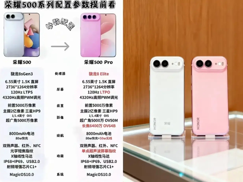 这等于是明示了吧!最近荣耀500被网友刷屏了!中端机敢用骁龙8Gen4,还给8000mAh大电池,没想到还全系标配两亿像素主摄!这直接卷成麻花了!