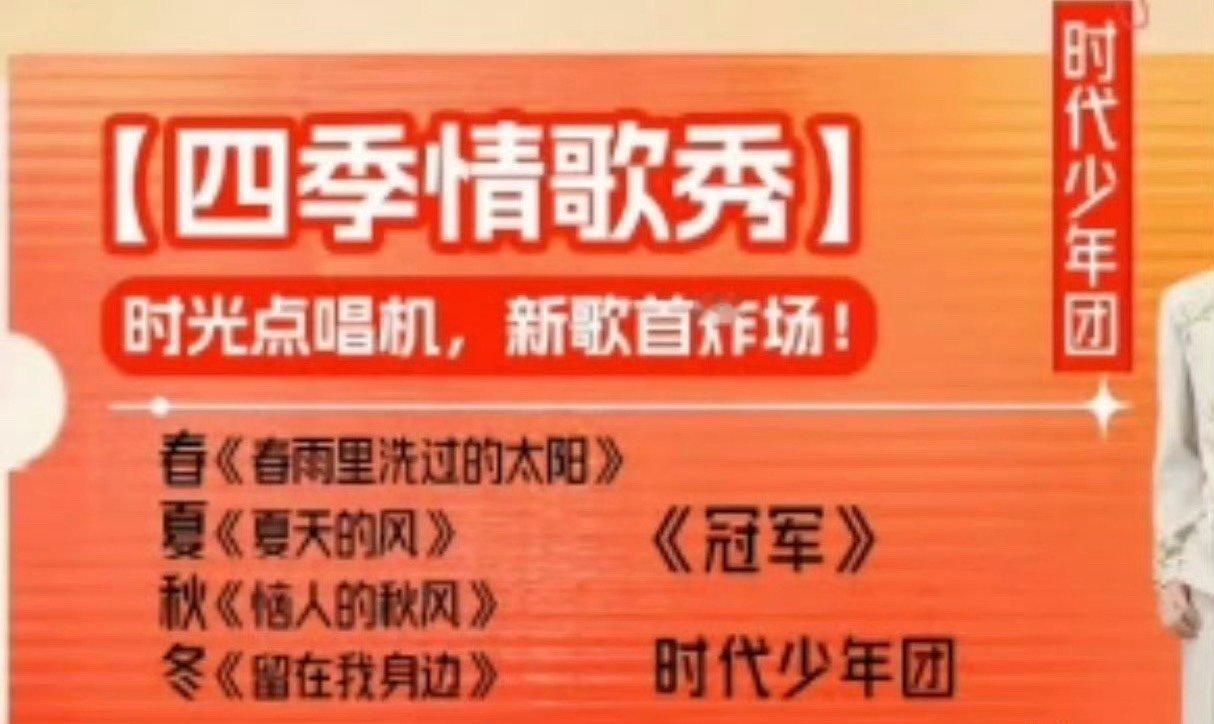 时代少年团四季情歌秀串烧时代少年团四季情歌秀和冠军舞台哇哦期待这个时代少年团四季