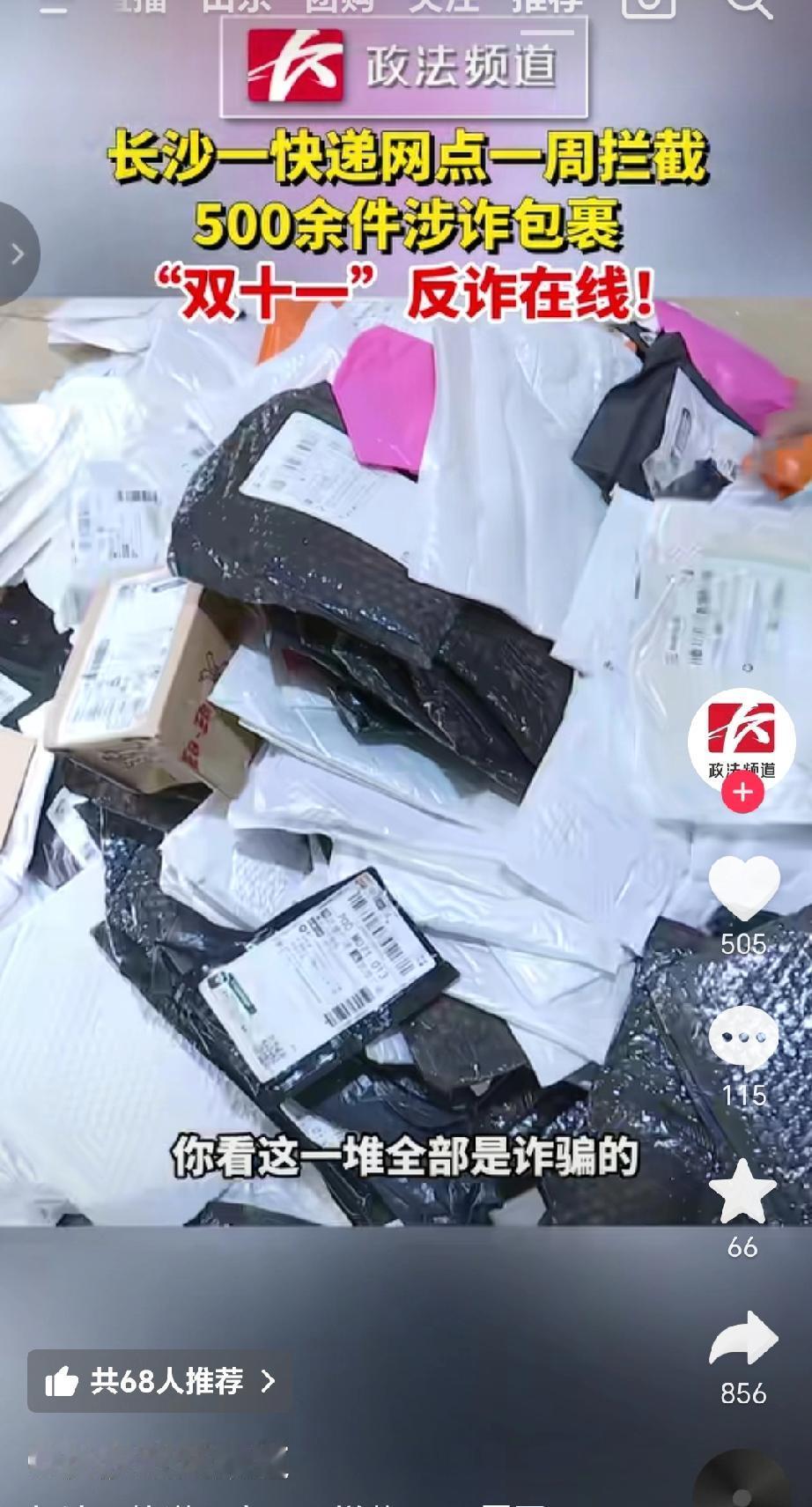 近期在湖南长沙,申通速递曙光分部网点一周拦截了500余件涉诈包裹。这些包裹很轻,拆开后里面是带有二维码的卡片,属于诈骗工具。快递员在扫描时发现这些包裹异常,通过联系收件人,发现收件人不在派送范围,从而识别出这些是诈骗包裹并拦截。警方提醒市民,来源不明的包裹别拆,陌生二维码别扫,网购售后纠纷要通过平台官方渠道解决,不要点击陌生链接,抵制高额返利诱惑。(来源于@长沙政法频道)