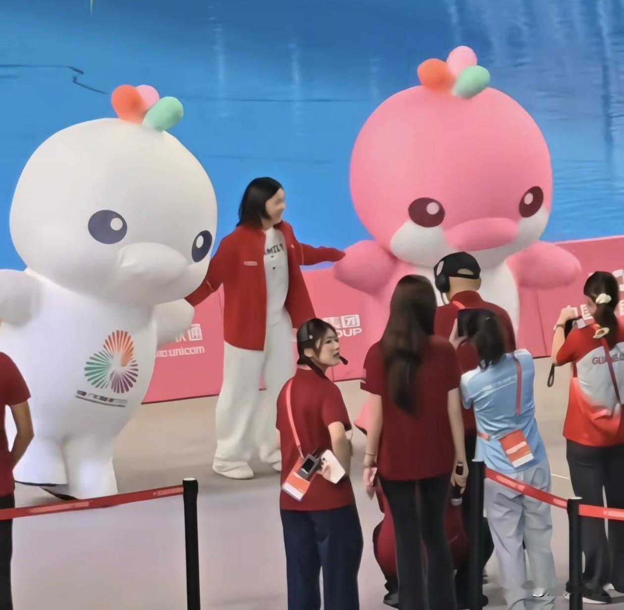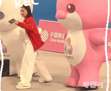 难得一见,全红婵与吉祥物大湾鸡跳舞。 10日晚上是女子单人十米跳台决赛,没有比