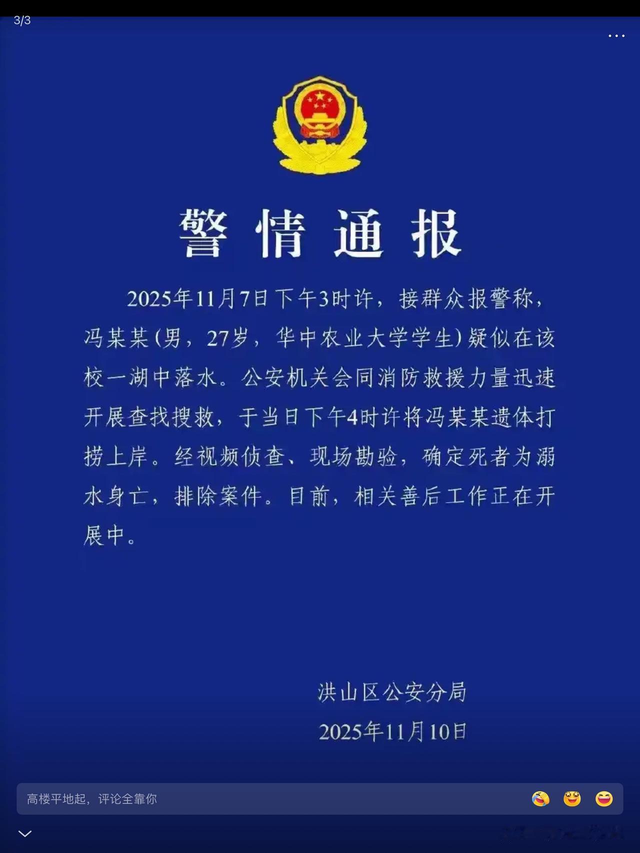 网传华中农业大学的一名学生,摘个橘子,掉进湖中溺亡。那句老话儿怎么说的,该你湖里