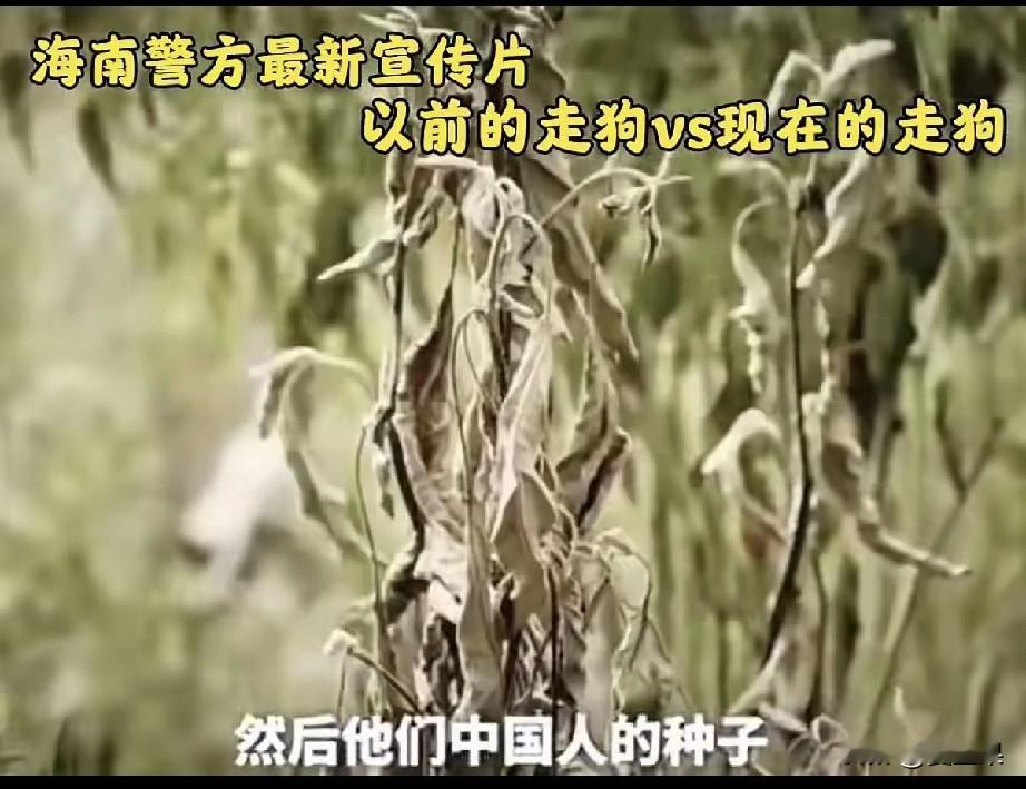 海南警方匠心之作, 推出的《以前的走狗和现在的走狗》宣传片,让人惊醒。 在这个小短片里, 以前的走狗,为太君鞍前马后,出卖军事要塞地图, 现在的走狗,打着合作研究的名义,将国家的水稻种子,出售给外国,外国以此研究出专门针对国产水稻的药物和害虫,出售给国内,让我们的土地生产不出粮食,到时候只能买国外的粮食。 警方为什么要推出这样的宣传,大概也是从破获案件而来。现在走狗的手段确实隐形了不少,更需要我们提高警惕。