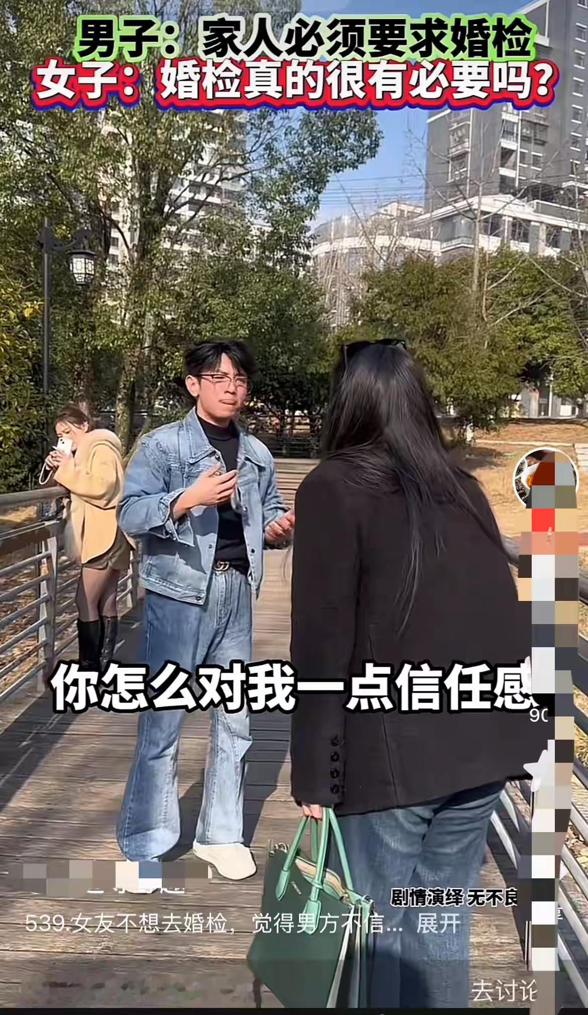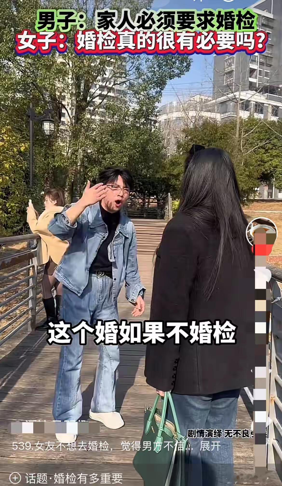 男子有错吗?女子欲与男子结婚,但男子家庭要求女子婚前要婚检否则不能结婚, 女子说,我将是你的妻子了,能不能不婚检,要尊重我,要对我有信任感,但男子不肯,执意女子要婚检,最后,女子说,如果这样,你就和你妈去过吧!两人不欢而散! 个人觉得领结婚证必须要有婚假报告才行,这样女孩子们也会珍惜爱护自己的身体。 婚检不应该是单方的,而应该是双方的,不仅是检查婚前是否有过同居行为,更重要的是健康,以及是否适合生育。 让婚检这个照妖镜、过滤网,明确辨别处女与非处女、男女健康与否、生育风险、健康风险。 确保,男人不受羞辱恶心,男女双方免受疾病传染、生育风险! 使无辜方,免受伤害! 要得!要得!!要得!!!