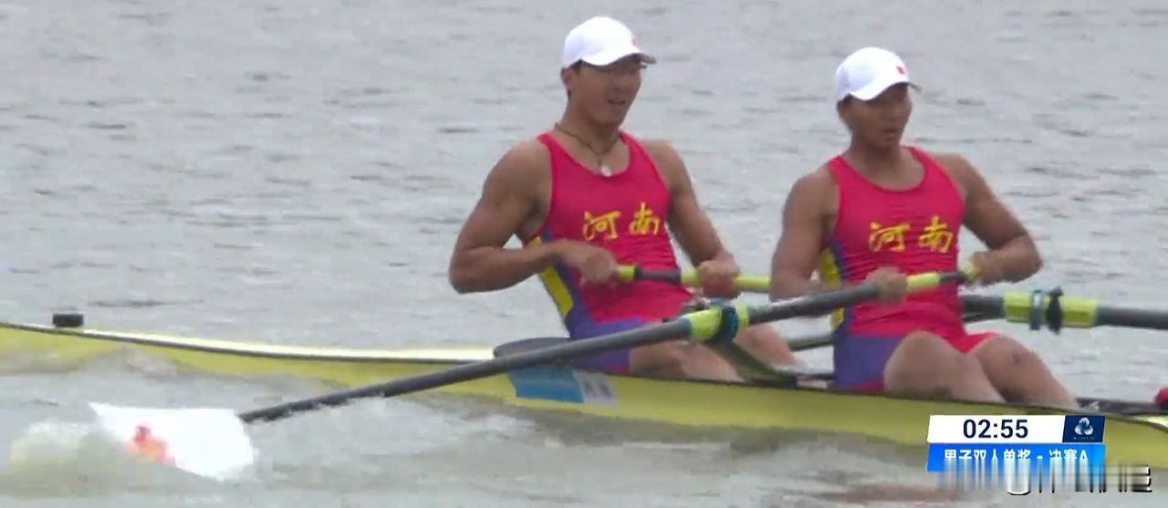第二金!!!河南赛艇选手边世豪/崔兵辉在男子双人双浆的决赛中,从开局一直保持领先,没有让金牌旁落,为河南代表团夺得竞技体育项目第二枚金牌!!!恭喜河南代表团,恭喜河南赛艇队!!!
