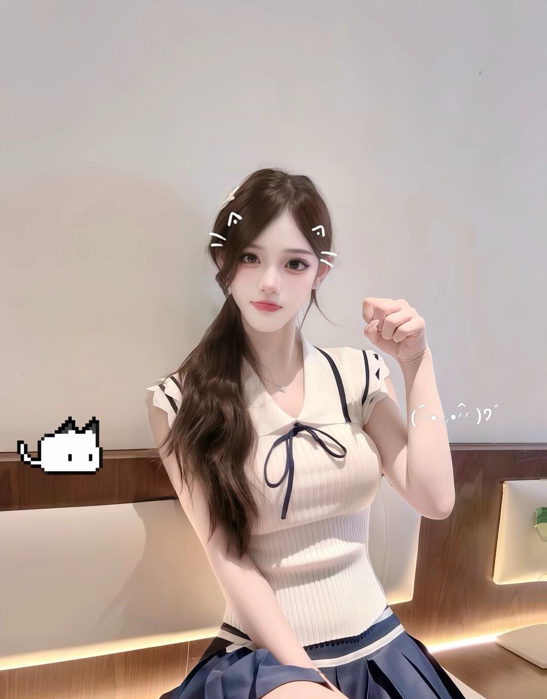优雅咖啡馆里的甜美少女,绿植环绕,氛围温馨。