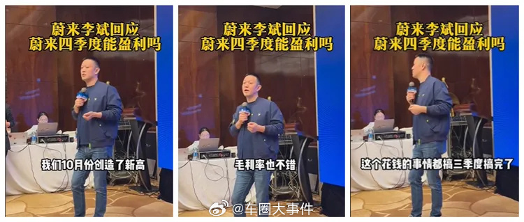 李斌称四季度盈利具备良好条件在近日的蔚来用户活动上,蔚来公司创始人李斌现场再次回应蔚来四季度能否盈利的问题。