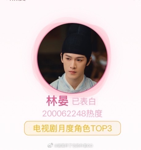 恭喜李昀锐林晏角色热度破2亿!厉害了,这个角色真的人设好演的也好!![打call