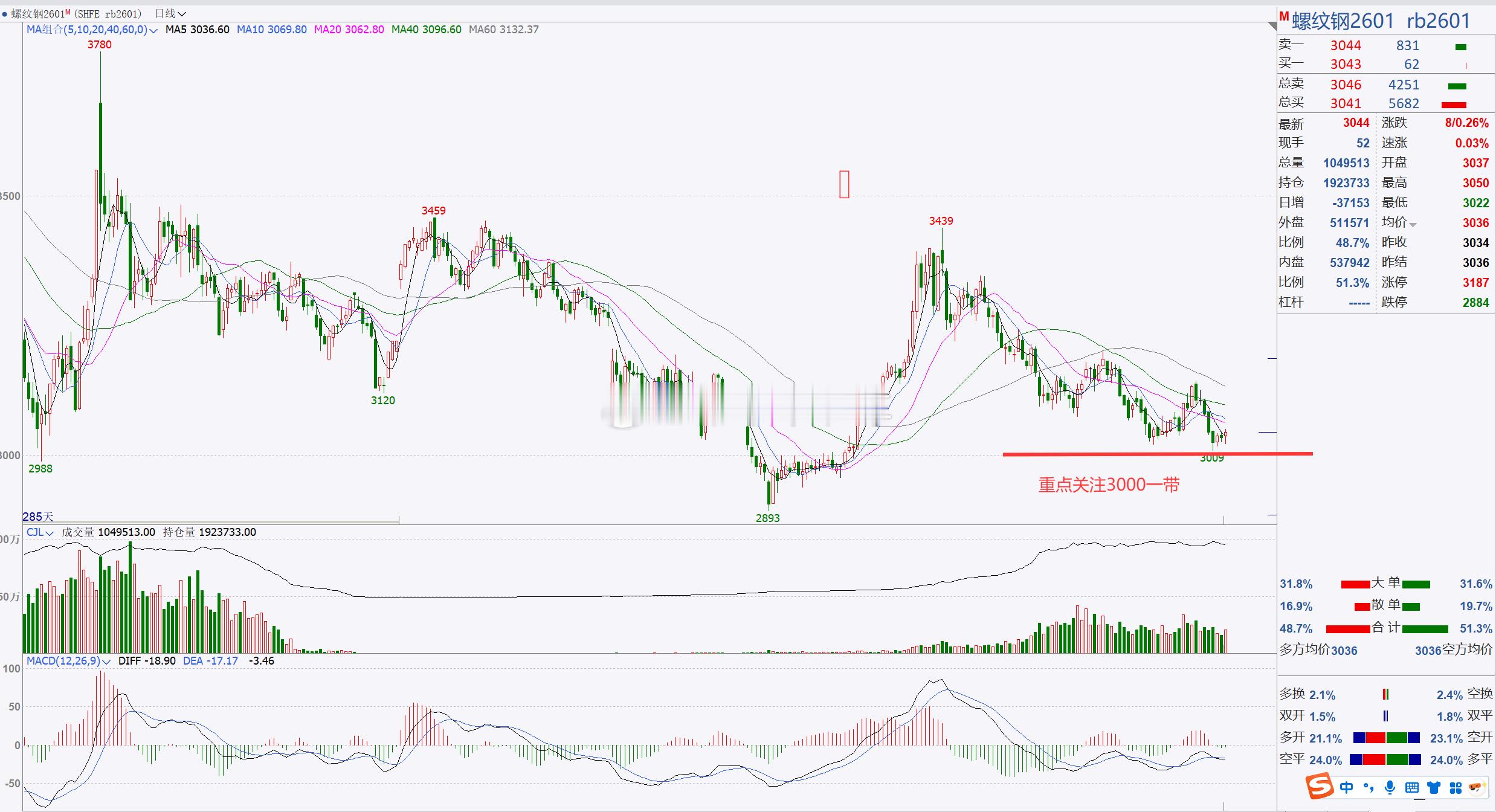 2、【螺纹2601】螺纹重点关注3000一带!