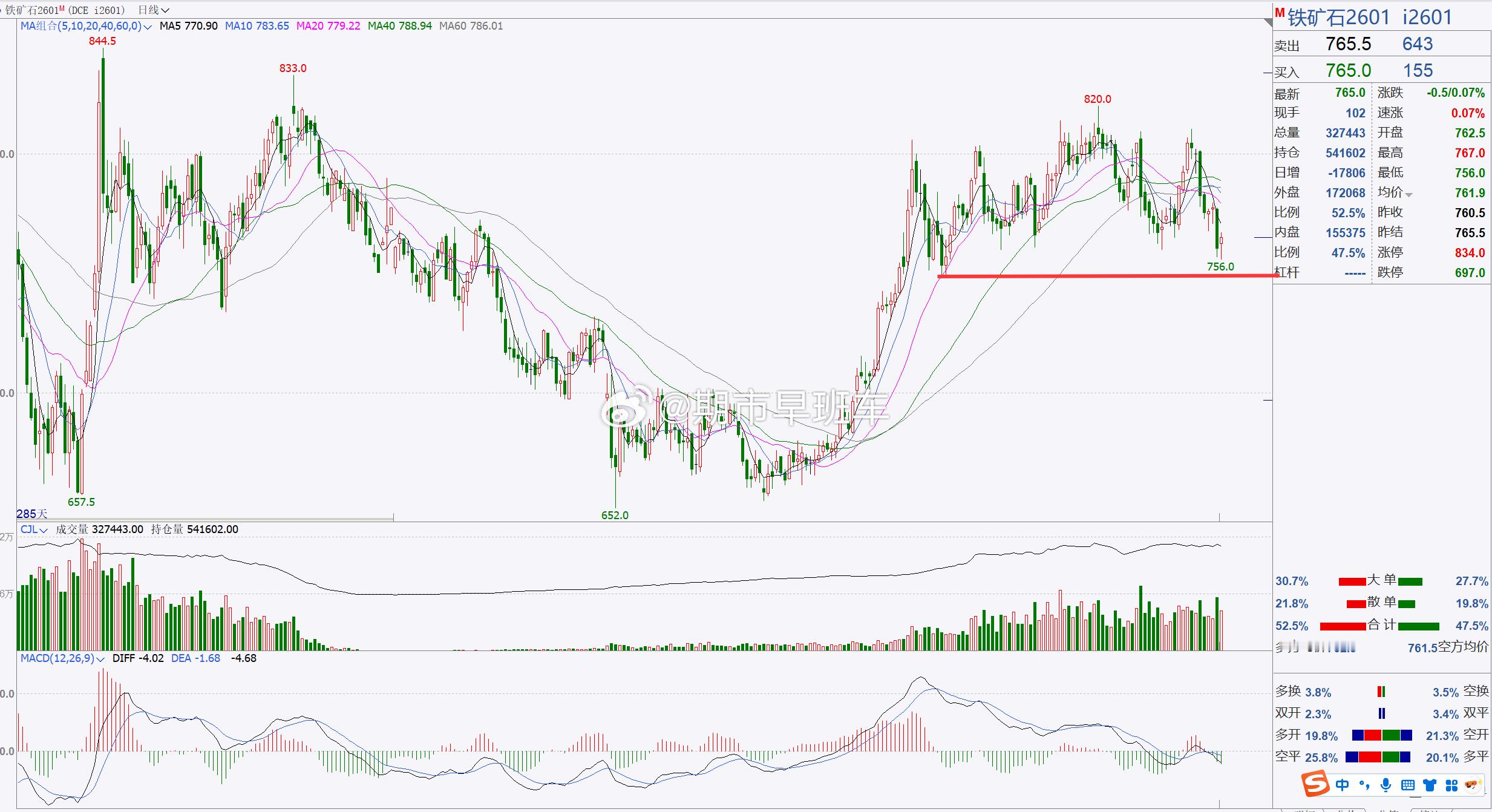 3、【铁矿石2601】铁矿石关注750一带,短线跟进!