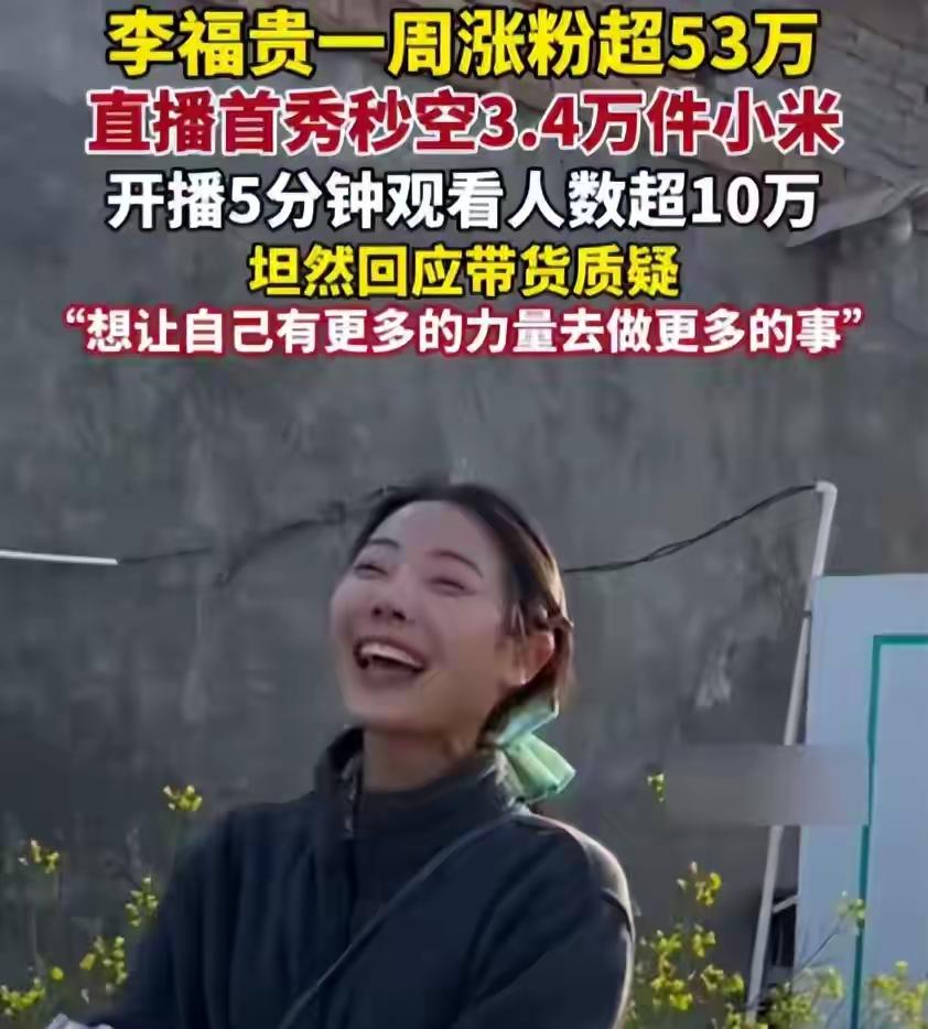 网红李福贵首场助农直播带货太行山小米,因发货地不符、价格偏高遭质疑,她哽咽道歉并解释缘由,承诺无理由退款。此前她被网友捧为“乡村之光”,却因“造神”后的疏漏遇反噬,这也给网红们提了醒:坦诚面对不完美才能走得远。 网友评论: 实话实说,我河南新乡的离卫辉山区60公里左右,我们每年这个季节都要去山里边农民家买小米,都是自己种的,吃不完,然后对外七元1斤。李富贵卖7块5,没赚什么钱 李福贵,她和当年那个现在已经销声匿迹,也曾经被包装炒作的四川网红李子柒,如出一辙!别在演戏骗人了! 一个河南人卖我们山西的小米,卖的比我们本地高两块六,这是善举? 李富贵被人骗了,已经退货了,假的,没有质检报告,药残超标 那些黑子说李富贵为了赚流量才这么做,你也去这么干我绝对支持你 李福贵直播间