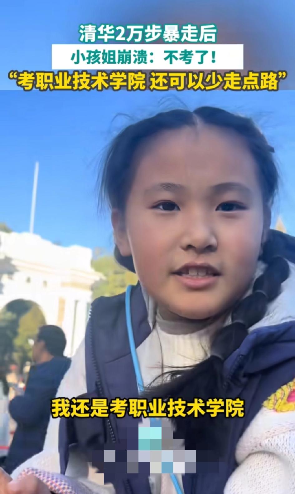 “笑不活了! ”一位妈妈带着女儿来到北京清华大学,想让女儿参观学校“激励”考这所学校。结果令人没想到的是,女儿逛完学校直言:不想考了 。 妈妈带着女儿来到清华大学,想让女儿感受一下这里面的深厚文化底蕴,想激励一下女儿好好考大学。 女儿逛完学校走了竟然有2万多步 。妈妈问女儿要不要考这所大学 ,女儿的回答让妈妈直接忍不住大笑起来 。“不考了,不考了,我还是考个职业技术学院吧,还能少走一点路 。” 此事引起网友们热议 ,有网友说:“姑娘真是清醒,不受现代教育的任何影响。” 还有网友说:“我当时就是因为不想走那么多路,才不读这个大学的。” 也有网友说:“走了2万步,说明知识的路没有尽头,只有坚持不懈,努力前进,前面的风景会更好。” 你会为了少走路而放弃理想大学吗 ? 此事你有什么看法??