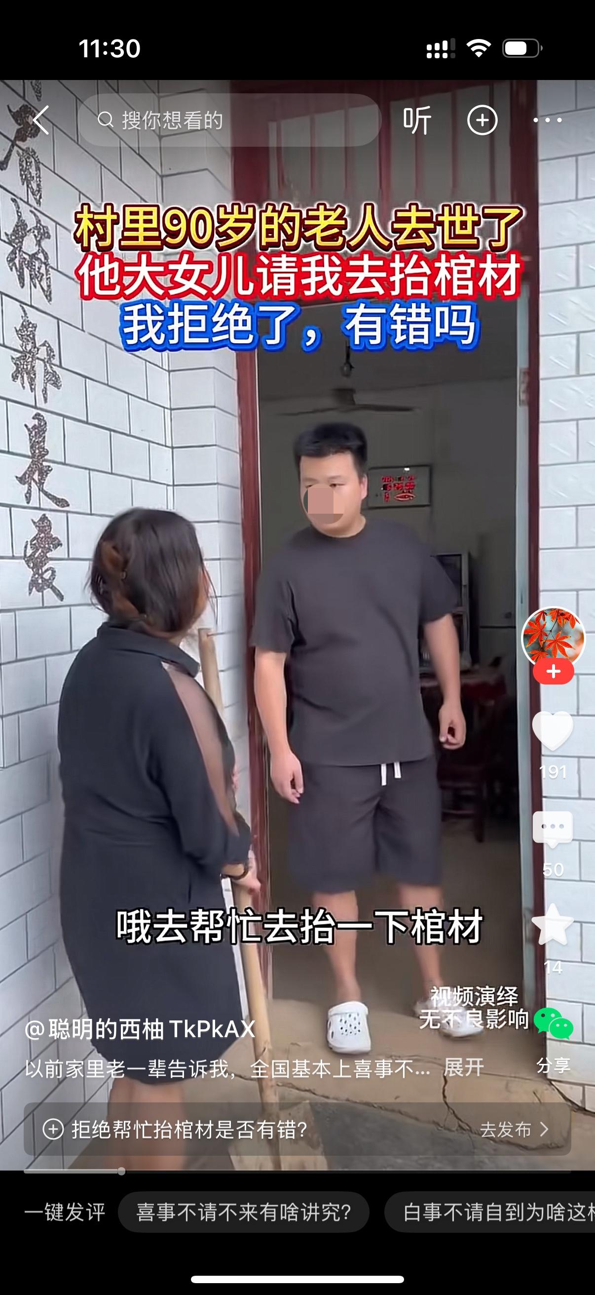 村里90岁的老人去世了。大女儿请男人去帮忙抬一下棺材。男人却摆手拒绝,我不去我不去。女人第二次开口,帮忙去抬一下棺材?男人再次拒绝,我不去。乡里乡亲的,人都去世了,这个男人没有一丝情分,真是让人寒心。什么远亲不如近邻,这样的邻居要有何用?