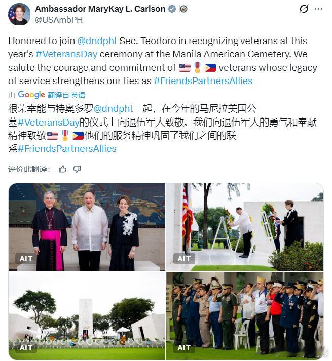 菲律宾正遭台风重创,美国曾说“与菲律宾站在一起”!结果确实在一起,一起向美国退伍军人致敬。