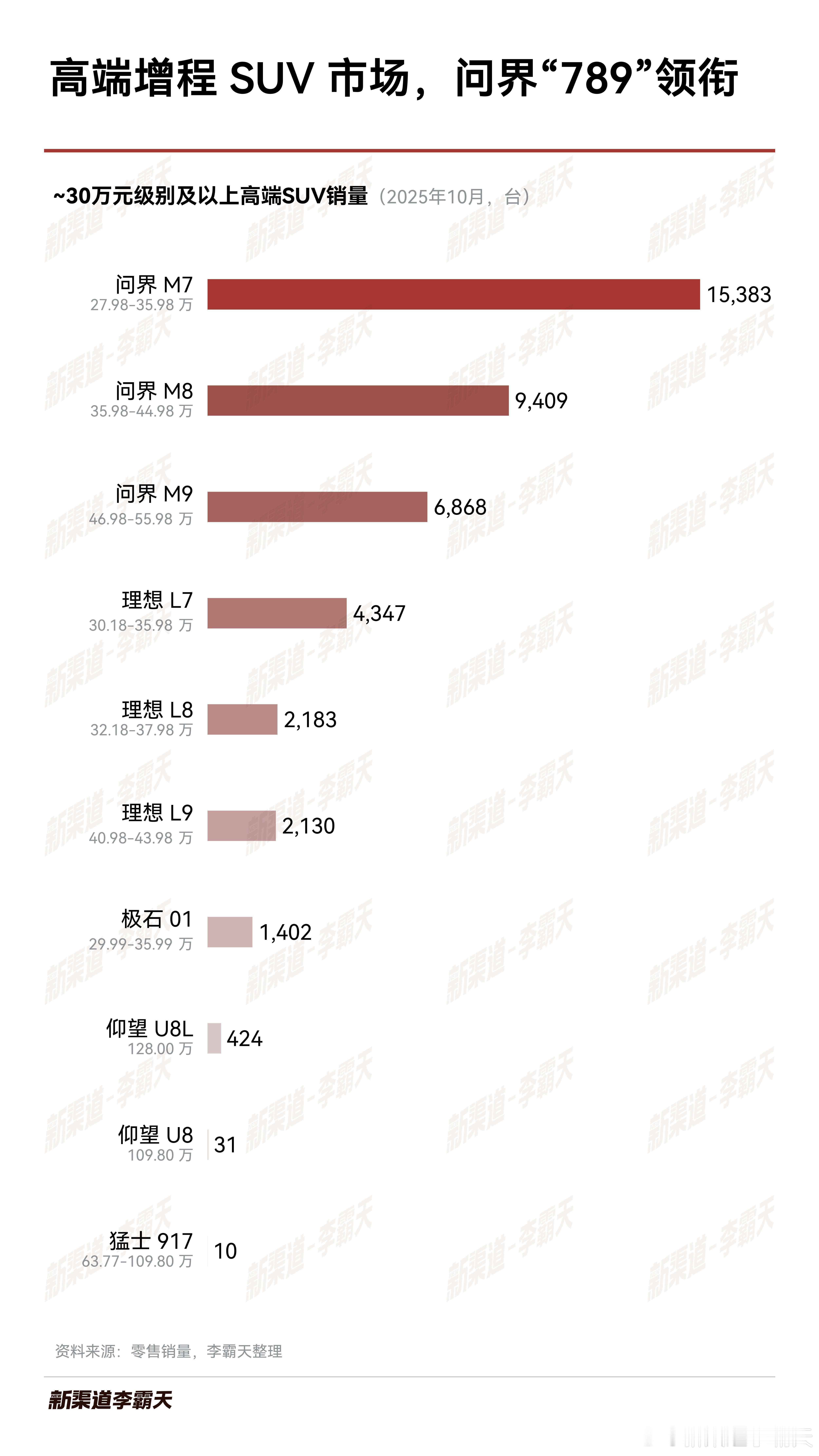 10 月高端增程SUV市场:问界 M7、M8、M9领衔