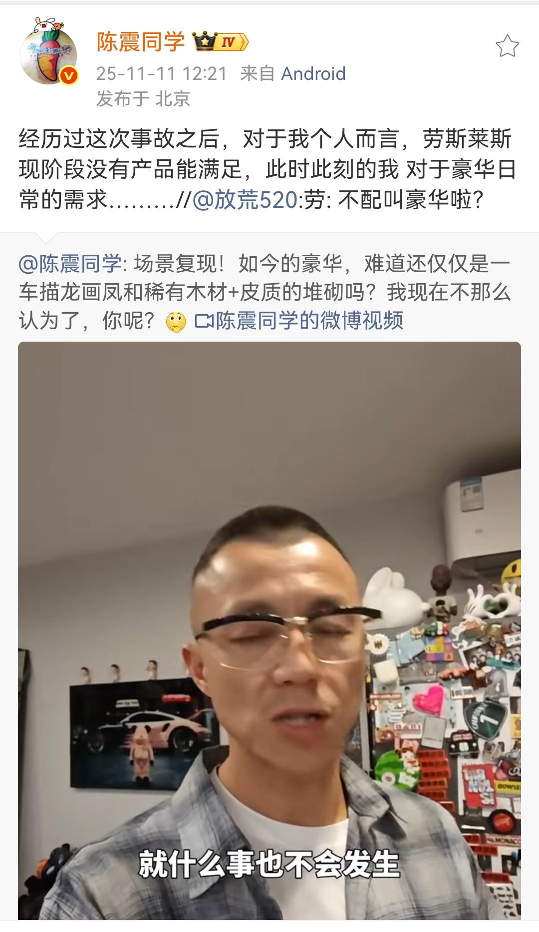 陈震:经历过劳斯莱斯事故之后,对于我个人而言,劳斯莱斯现阶段没有产品能满足,我对