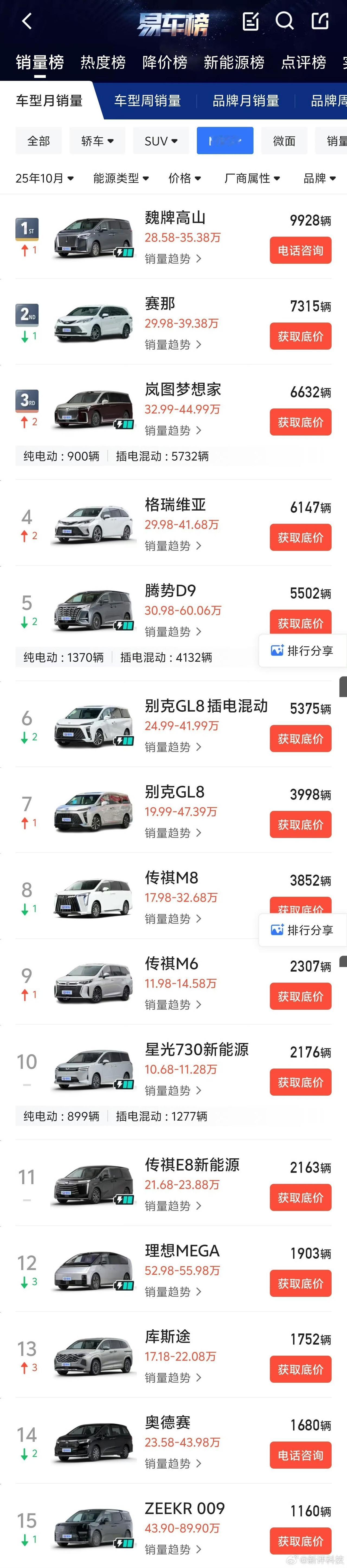 理想MEGA在上海发生的事件,对销量影响极大10月销量比9月跌了一千多辆! 这种事件确实会影响大家的选择,会转而购买其他的车型,不过理想汽车方面迅速的应对措施,应该会让该款车在11月份的销量有所挽回。 现在的mpv市场可选择的车型真的是非常的多,卖的最好的是魏牌高山,其次别克的几款车型卖的都挺好的。 各位是怎么看的?欢迎评论区留言。