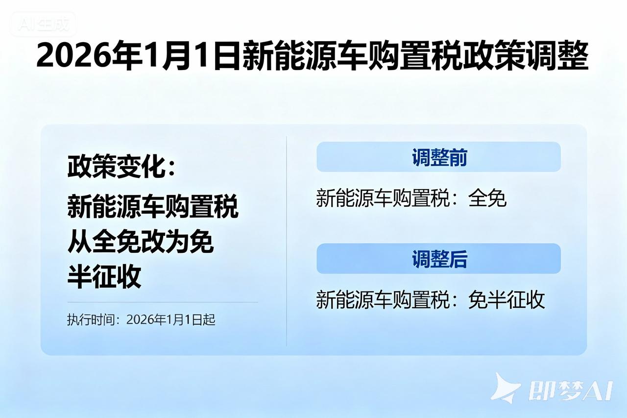 新能源汽车免征购置税政策将调整,明年1月1曰起减为一半征收购置税 我国新能源汽车购置税政策将迎来重要调整。自2024年1月1日起,实施了多年的全额免征政策将告一段落。 根据新规,届时购买新能源汽车将不再享受全额免税,而是改为免征一半的车辆购置税。这一调整意味着消费者的实际购车成本将会有所上升。 此次政策切换设置了一定的过渡期。对于在今年年底前已购车的用户,只要在购车发票开具后的60天内完成申报,仍可按照原政策享受全额免税。 此举标志着国家对新能源汽车产业的扶持进入了新阶段,政策意在继续鼓励市场消费的同时,也推动产业迈向更成熟的市场化竞争。