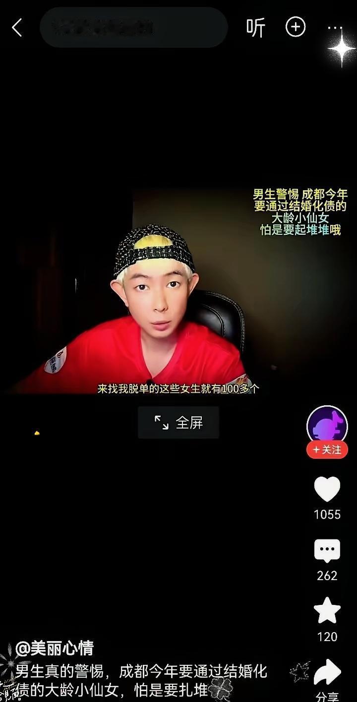 家人们,成都一红娘一个月见100个相亲女,目的竟然都是找人结婚还债!看到这消息,我后背直冒冷汗,这可不是段子,是红娘亲口说的。 本以为相亲是情投意合,结果成了找“冤大头”搞风投。你以为在奔赴美好爱情,实则是给对方的消费窟窿填坑。 关键是,这些女生外表光鲜,朋友圈岁月静好,一口一个想结婚想找踏实男人,让人根本分辨不出。你要是质疑,还会被舆论喷“小气”“不爱她”。 这不仅坏了相亲的风气,真正想好好过日子的姑娘也跟着背锅,男的更是被吓怕了,宁愿躺平。所以为啥现在男人不主动?你们怎么看呢?