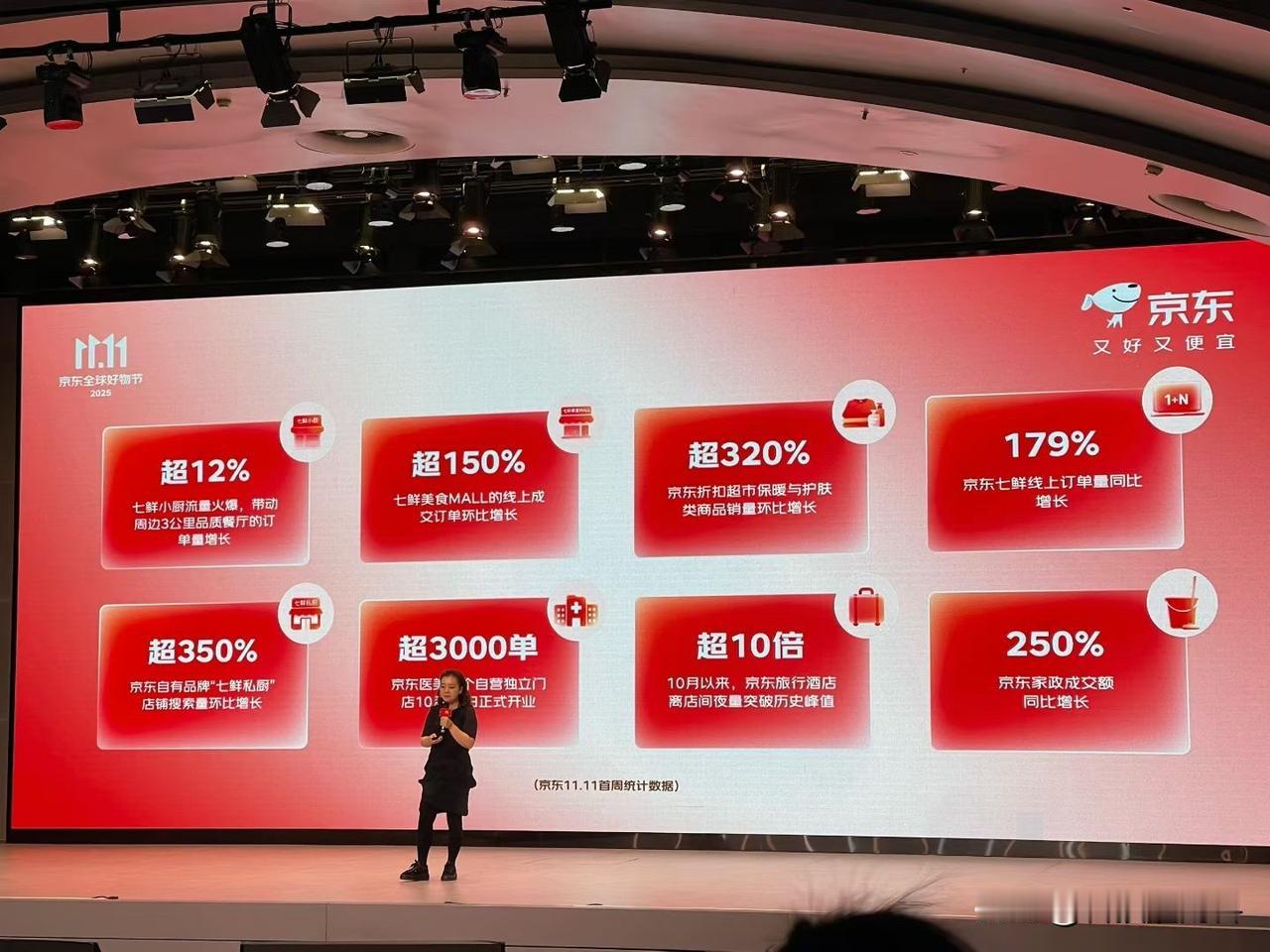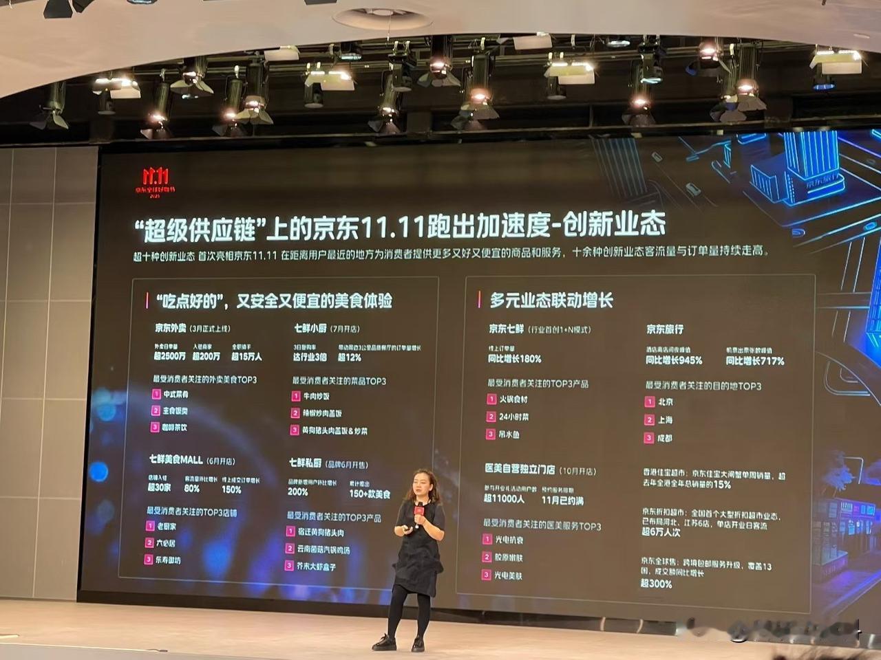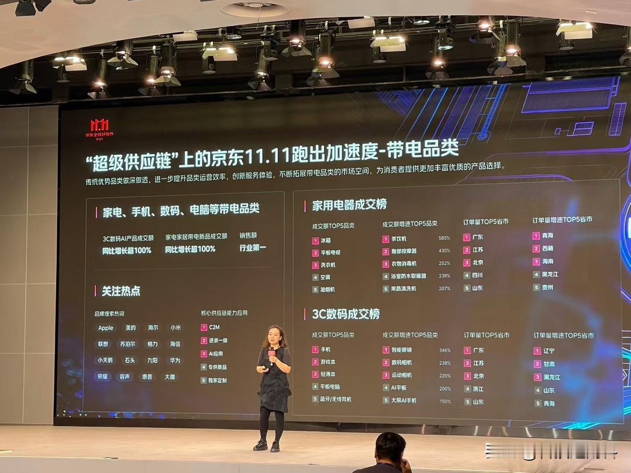京东披露今年双11数据一堆数据:活跃用户增24.7%,外卖日订单超2500万,东哥家乡菜黄狗猪头肉成最受关注产品,北京购买力最强,AI已融入双11各个环节。[庆祝] 带电商品还是京东的优势所在,今年的京东11.11,数码3C和家电新品的增长惊人,其中超级供应链成为京东双11的主打关键词,这需要多年来的技术和市场经验积累。 京东强调自身的供应链能力,3600个国内仓与超130个海外仓联动,66万一线人员筑牢履约根基,从产业带到全球终端无缝衔接。AI驱动的智能调度让近百城实现“分钟级送达”。 值得关注的是双11期间,京东新用户增长24.7%,说明在供应链的能力覆盖下,京东依旧保持了自己的发展动能。
