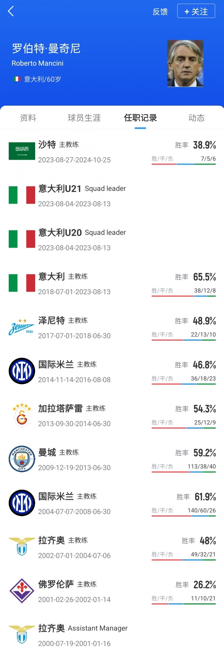 2023年8月,曼奇尼因与意大利足协矛盾突然宣布辞职,随后他接受了沙特国家队的邀约,签约至2027年,年薪2500万欧。