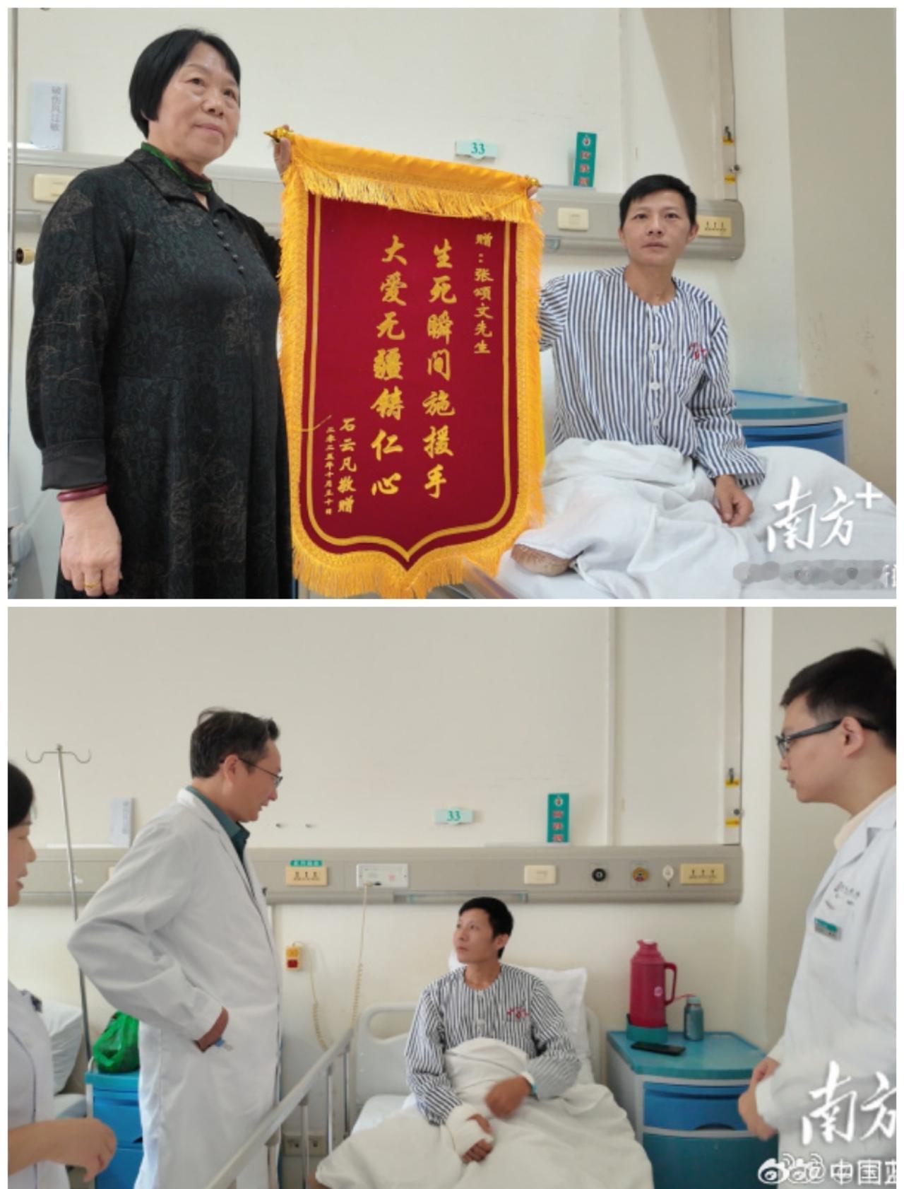 张颂文和发小阿健聚餐救了个人。张颂文通过后视镜发现了后面有倒地的摩托车,他叫发小回去看看。围观的路人说报警了叫他们不要碰伤者免得被讹诈。 张颂文询问发小怕不怕被讹,阿健说不怕。张颂文向路人借来亮着灯的摩托车充当警示标识,与众人合力抬起压在伤者腿上的电动车。张颂文检查伤者石先生看有没有骨折,免得挪动容易二次伤害。 然后联系了石先生的朋友。帮石先生捡起地上的玛瑙手串珠子包好放回伤者的口袋。救护车和警车很快就到场处理救助。 石先生的朋友到场认出了戴着帽子和口罩的救人者是张颂文。石先生和他朋友送了张颂文一面锦旗。