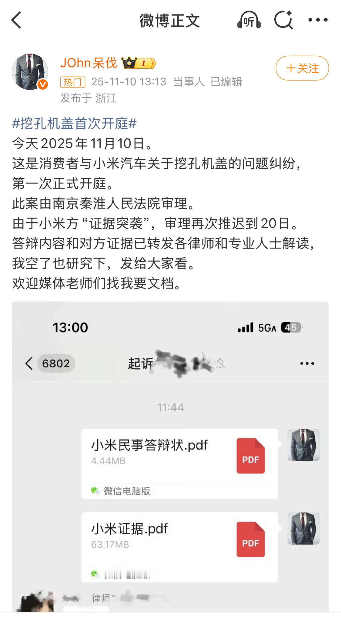 11月11日,小米汽车挖孔机盖外观专利获授权,设计要点在于形状。