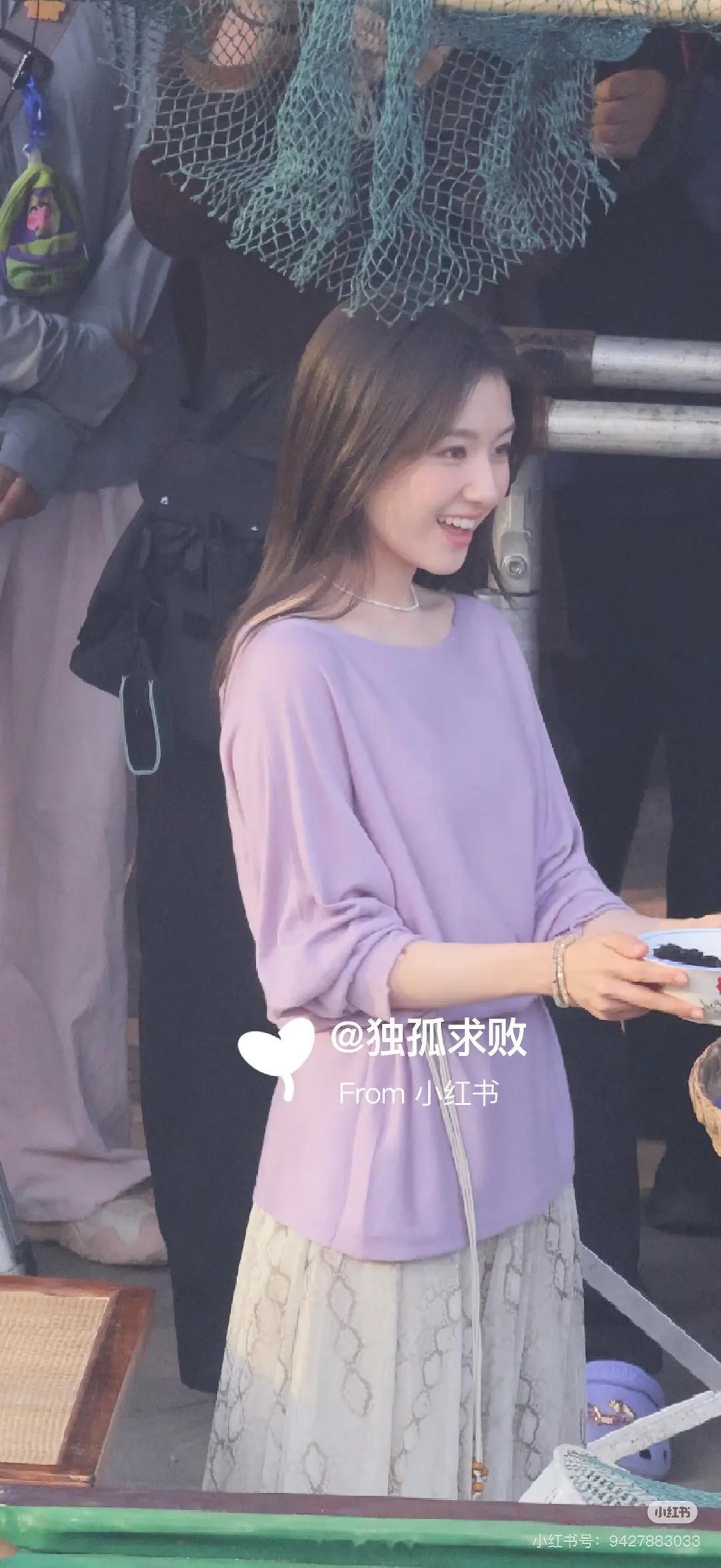 刘亦菲把死亡玫粉穿出了定制款的感觉,这种颜色普通人穿上分分钟黑三度,她居然能穿出