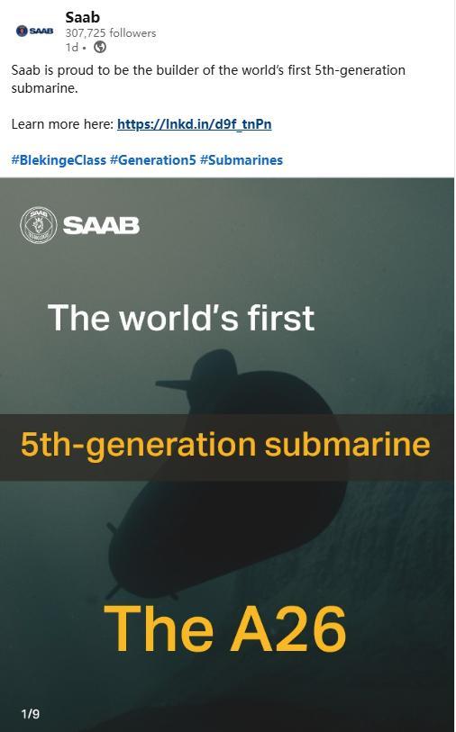 瑞典萨博:世界上第一艘第五代潜艇——A26