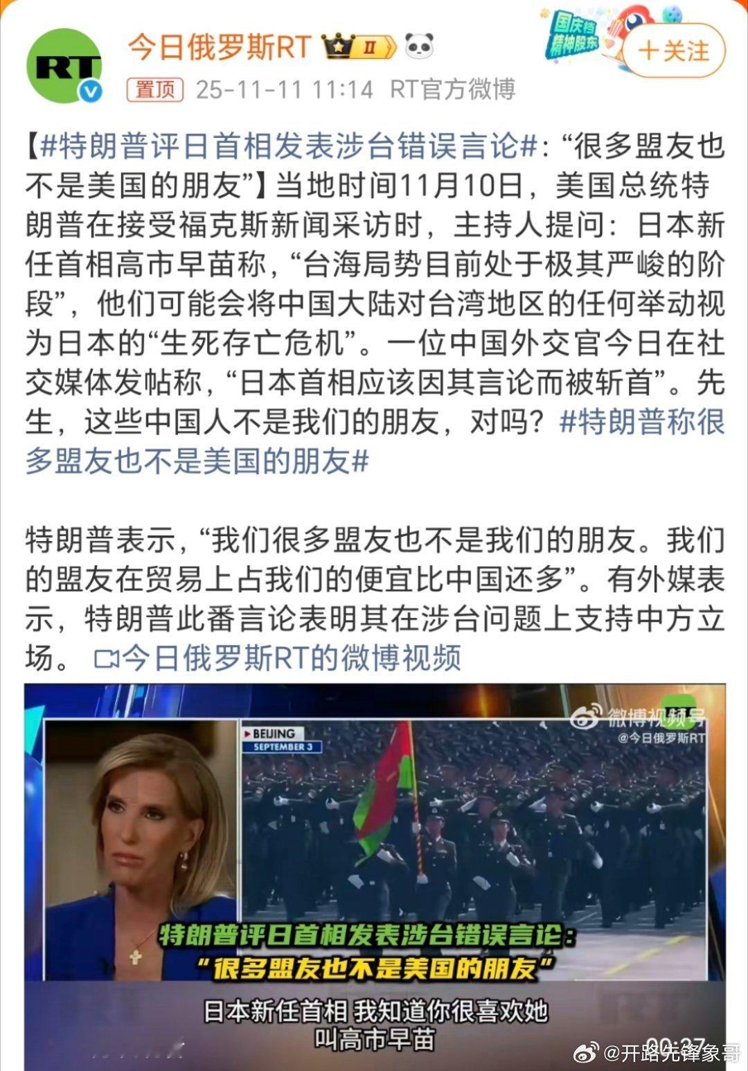 “很多盟友也不是美国的朋友”这话一出来就已经很明显了,他日本跟他美国不是朋友的