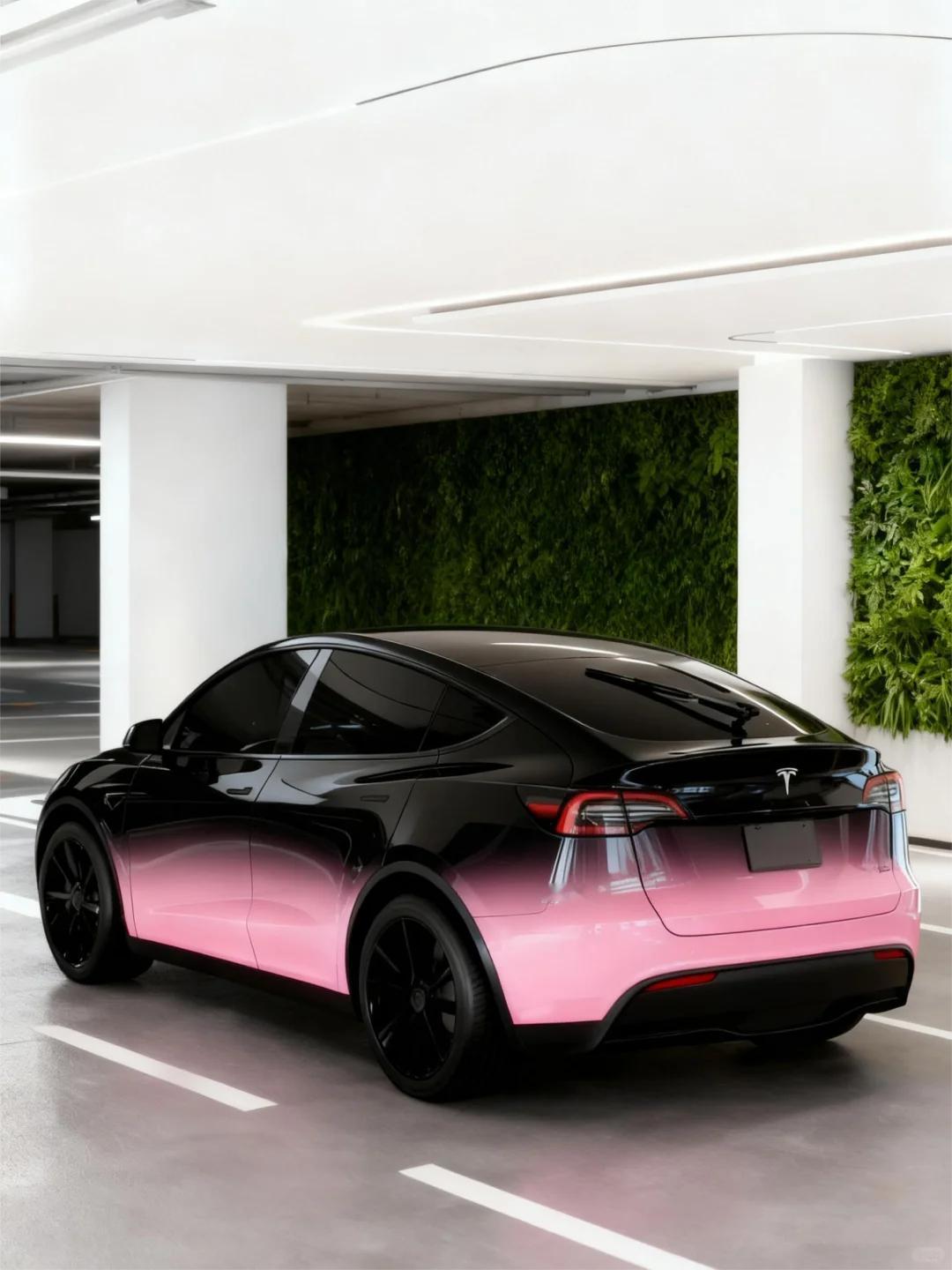 特斯拉黑色粉色渐变,美到没朋友。。。