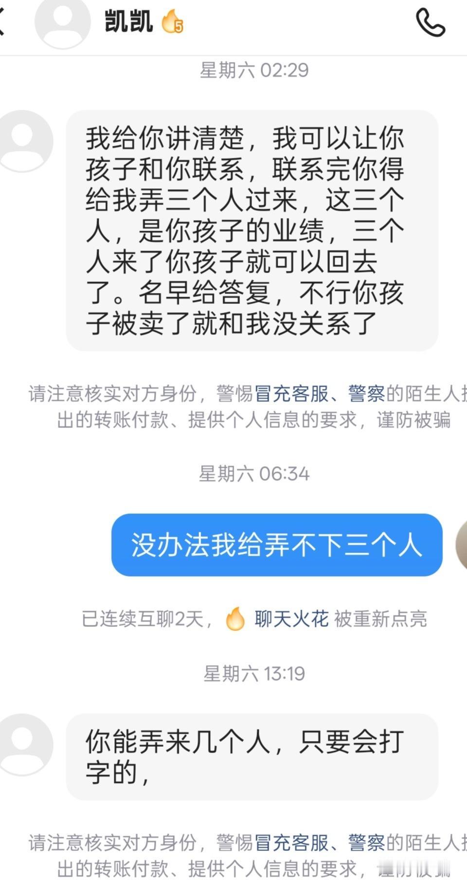 山西少年失联柬埔寨,家人被胁迫换人赎子,跨境案件陷入僵局。 @椰子娱乐 今年8月,山西临汾一个15岁男孩王某凯在天津失踪。他爸说孩子之前一直不想上学,后来说自己要去广东学修车。8号那天孩子突然消失,手机一直关机。后来发现他坐飞机去了广西边境,再后来社交账号定位跳到了柬埔寨。 家人联系柬埔寨账号,对方要求拿三个人换他回来,不然就要20万。他妈急得跪在地上拍视频求帮忙,家里老人前阵子刚做了手术,根本没钱。天津警方已经以偷越国境立案,但柬埔寨那边没具体地点,使馆也没办法。 现在孩子还在那边,家里拿不出钱,案件还在查。这事儿让人担心,但也不知道还能咋办。 @椰子娱乐 热门