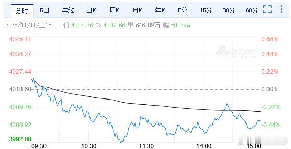 【午后三大指数窄幅震荡 沪指跌0.39%】今日午后,A股三大指数波澜不惊维持窄幅震荡走势,盘面上,电力、光伏设备、大消费、电池等板块个股表现强势。截至收盘,沪指跌0.39%,报4002.76点;深成指跌1.03%,报13289.01点;创业板指跌1.4%,报3134.32点;科创50指数跌1.42%,报1387.53点。沪深两市成交额不足2万亿,全市约2800股上涨,2500股下跌,主力资金净流出约640亿元。(jl)