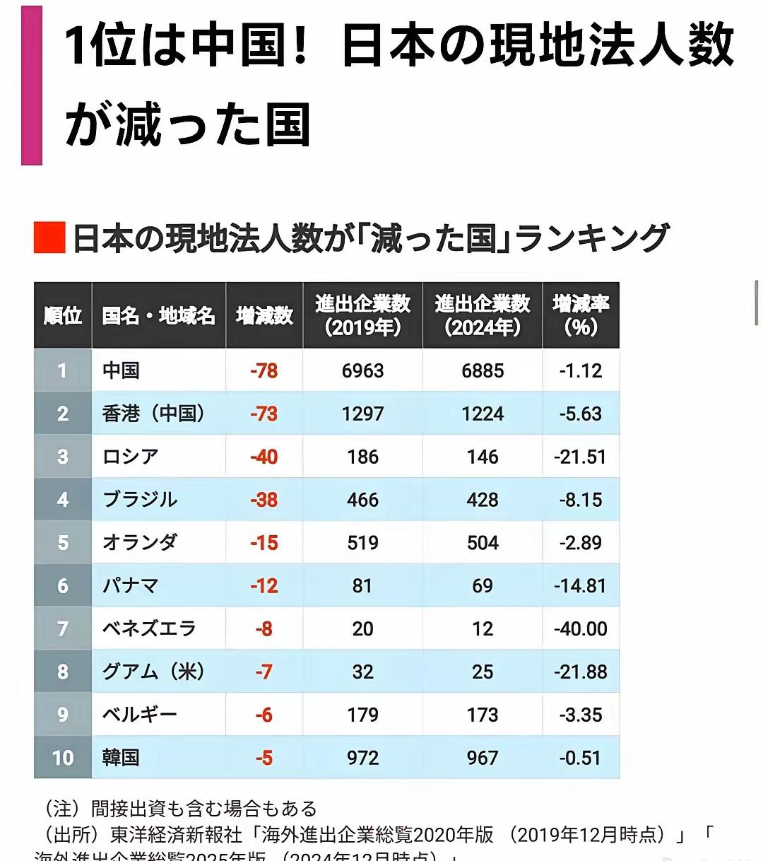 这五年,日本海外企业撤退最多的国家是中国! 结果日本媒体搞了个排名。硬说中国经济下滑, 但反过来一看,在中国的日本企业有6500多家。 后面2-10位,9个国家和地区加起来都没在中国的日企多。