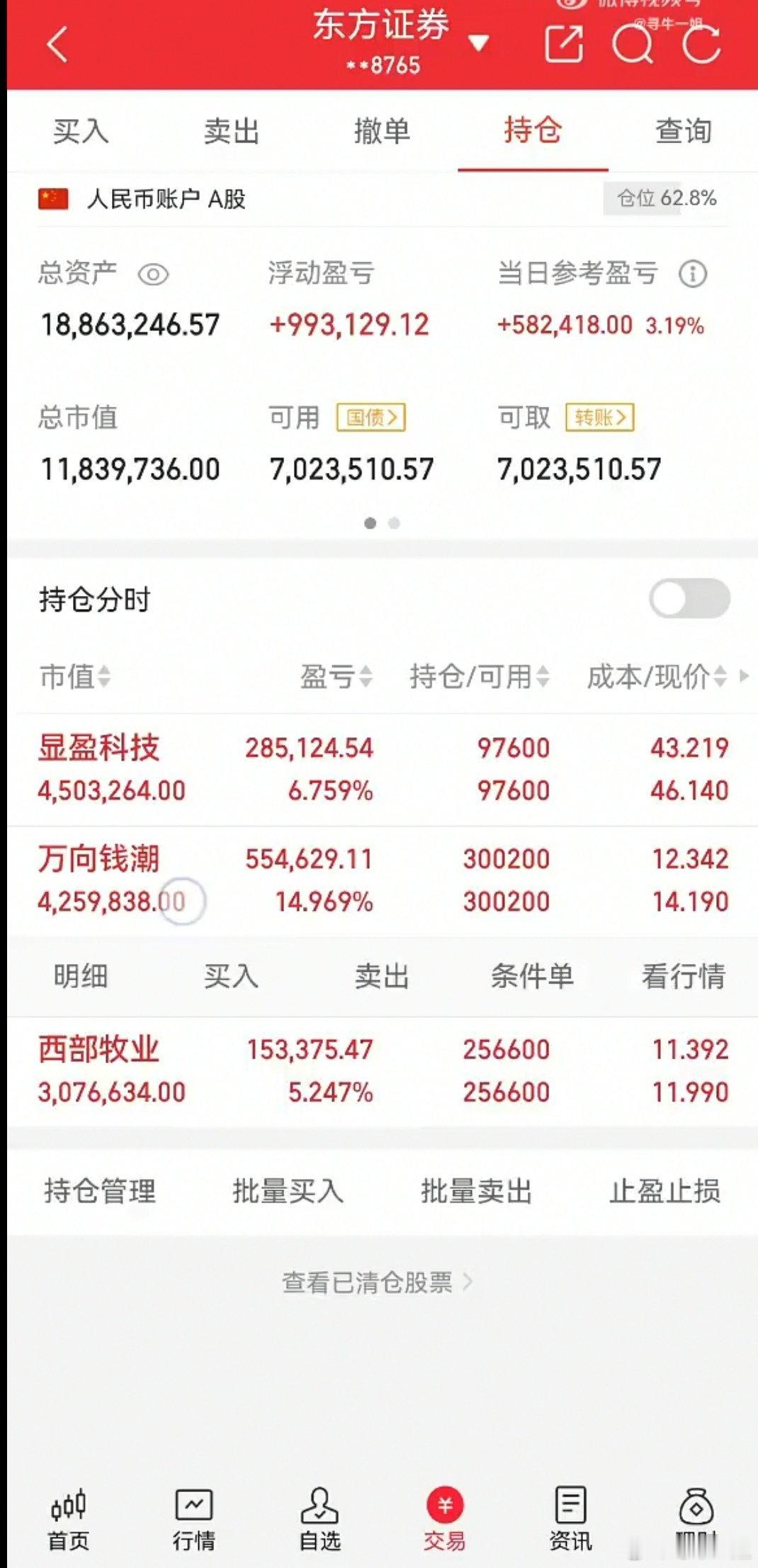 晚上好!今天一姐持有的显盈科技反包继续看好期待明天,现在还持有西部牧业跟万向钱潮