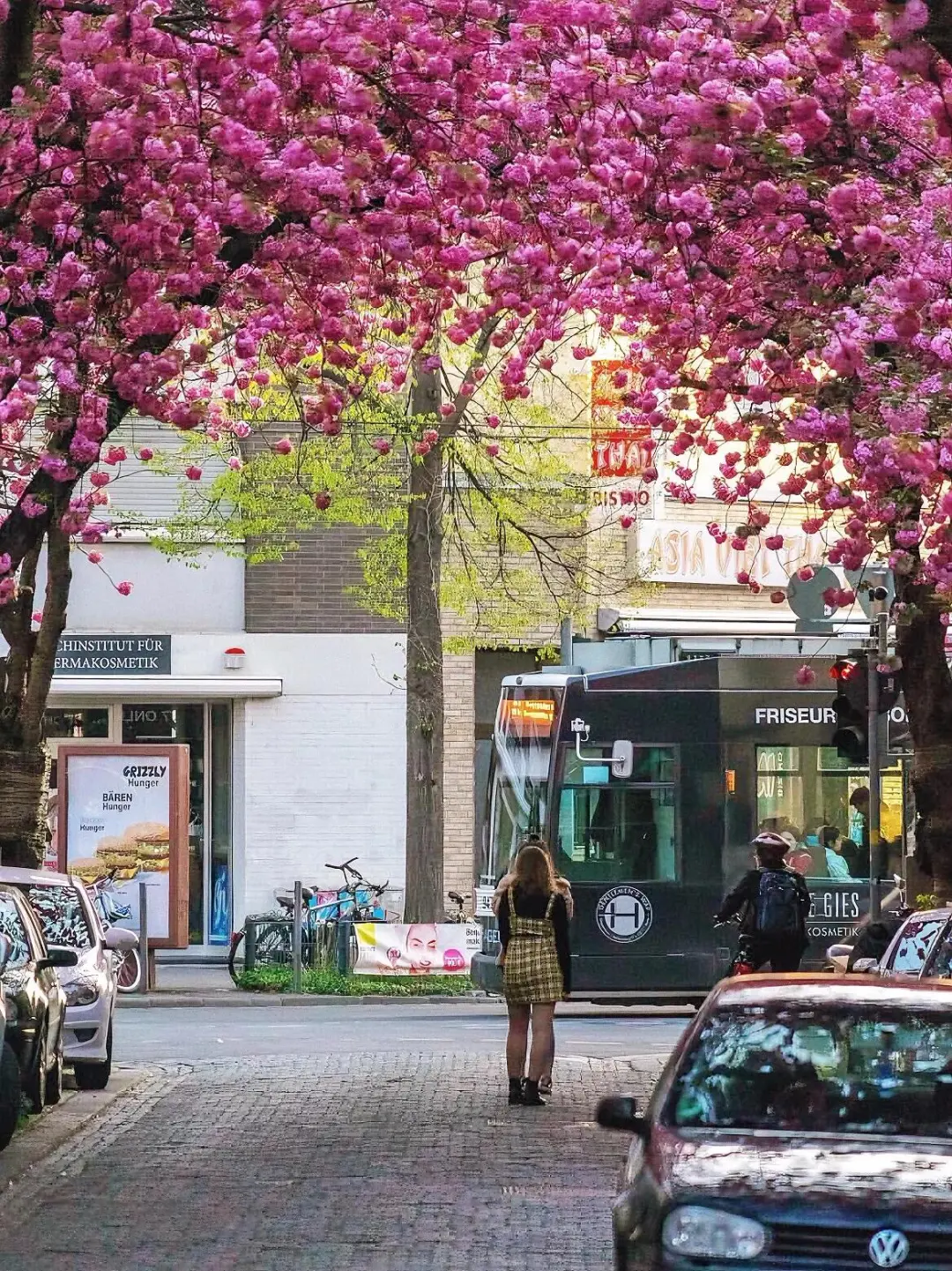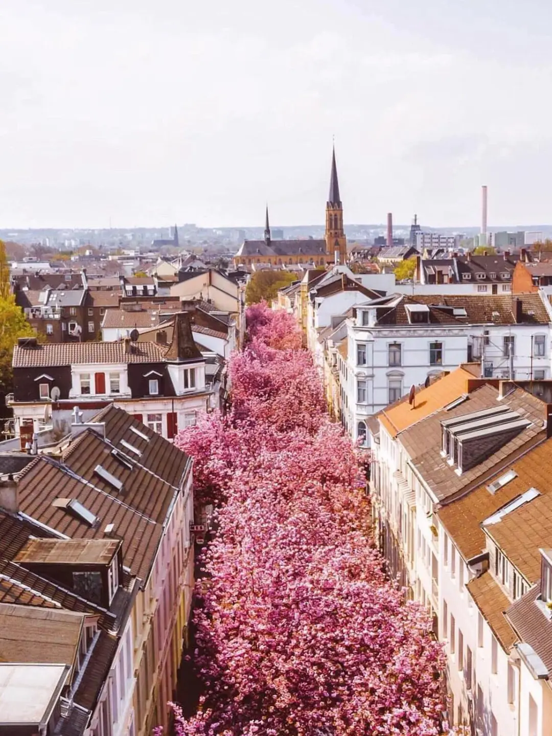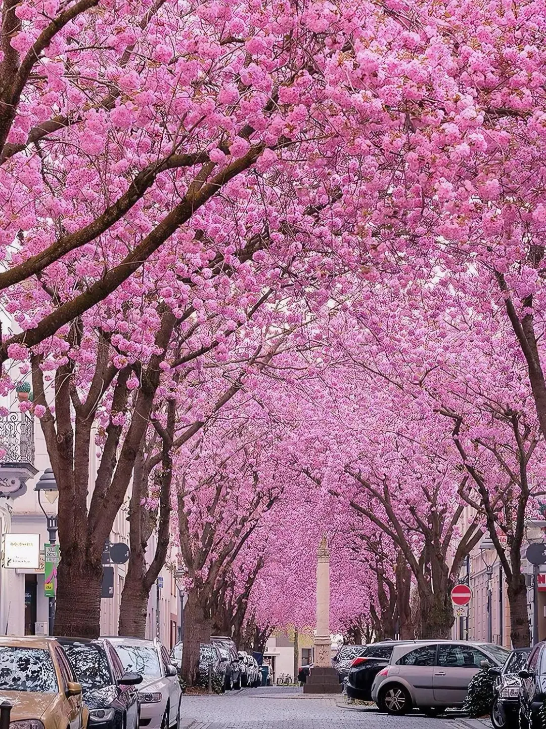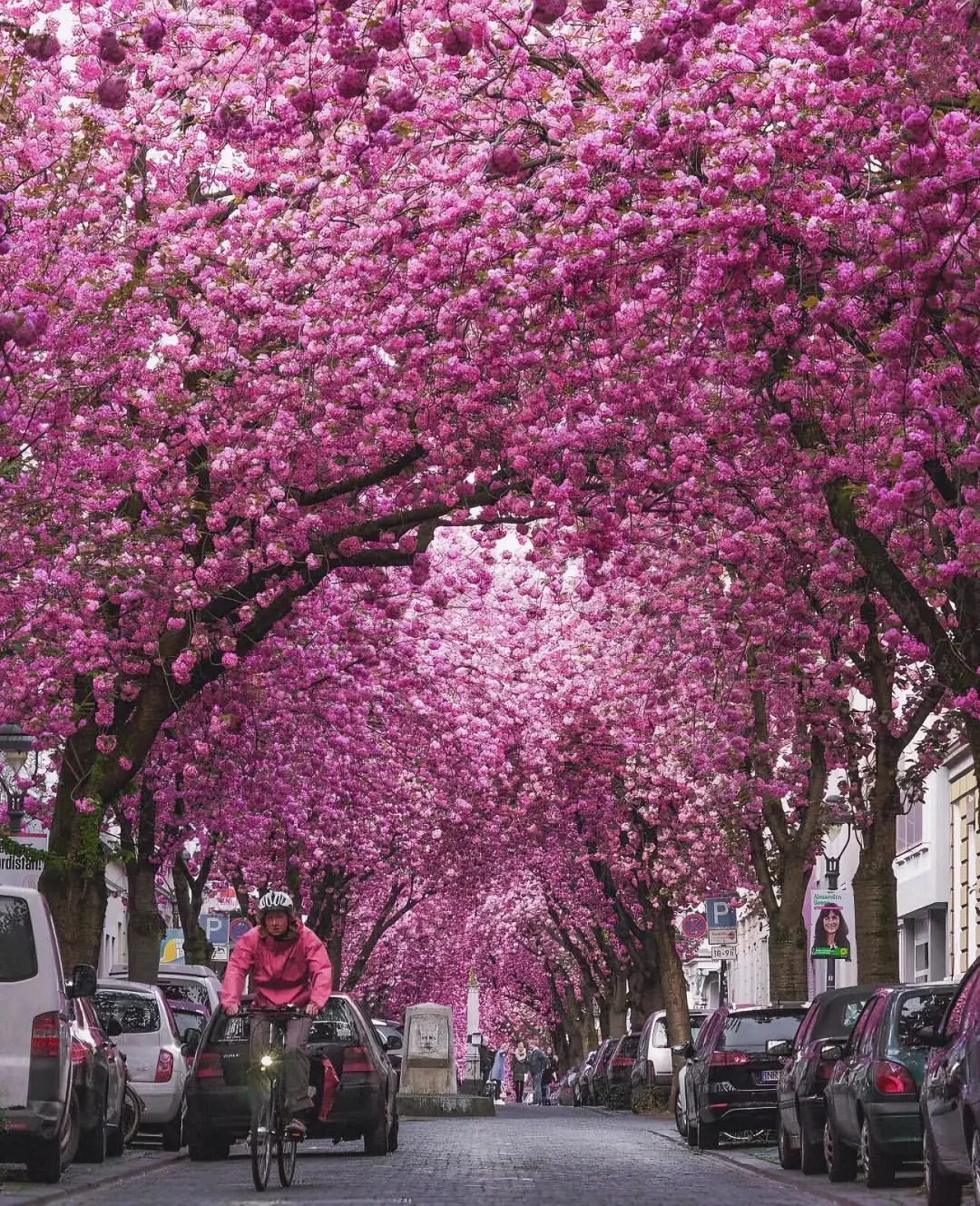 马上就要迎来赏樱的绝佳时节,欧洲也有不少城市拥有超美的赏樱地,今天给大家种草的这个樱花大道就位于德国!\n\t\n🌸波恩樱花大道:Heerstraße, Bonn\n\t\n📖关于波恩:\n这座城市位于德国西部,以著名作曲家贝多芬的出生地而闻名,1980 年代,Heerstrasse 沿线就种植了日本樱花树,每年春天,这里都是非常著名的赏樱胜地\n\t\n📅波恩的樱花什么时候开?\n最佳时间完全取决于天气,因此不能完全准确预测,不过通常会在 4 月的中旬达到顶峰,可以经常上ins关注实时动态\n\t\n🚄关于交通:\n我是从科隆出发,坐火车很快就可以抵达波恩,下了火车后按照导航步行15分钟就到樱花大道啦\n市中心非常适合步行,Heerstrasse距离市中心的大部分主要旅游景点只有十五到二十分钟的步行路程\n\t\n🌸樱花大道打卡tips:\n🔹喜欢拍照的朋友们一定要备好相机和镜头,因为这里真的非常惊艳,女生则可以穿着漂亮的小裙子,不过记得加件外套,天气还是有些微凉\n\t\n🔹整个樱花大道说长不长,不过拍拍照、逛逛街道的商店喝杯咖啡,2个小时很快就过去了\n\t\n🔹白天和晚上都是来这里打卡的好时间,夜樱也别有一番美景\n🔹沿着这条路漫步,会发现这里有很多咖啡店,还有纪念品商店和精品店\n——\n我当时从科隆出发所以晚上还是回到了科隆,因此比较建议在这里一日游,那么就为大家种草一家很棒的科隆\n【❤️Airbnb】,方便大家出行~\n\t\n🏠民宿名:Mittendrin und direkt am Park — 110 m²\n\t\n🌟民宿亮点:\n▪️ 公寓位于科隆最受欢迎的社区之一,紧邻城市花园的\"比利时区\",坐落在公园中央,十分安静\n▪️ 公寓宽敞,天花板超高,家具具有现代化的时髦感,两扇大窗映衬着窗外绿植十分漂亮\n▪️ 生活设施很齐全,有两间卧室,可以住下4人,地理位置真的很不错\n\t\n📷部分图via网络,图侵删\n