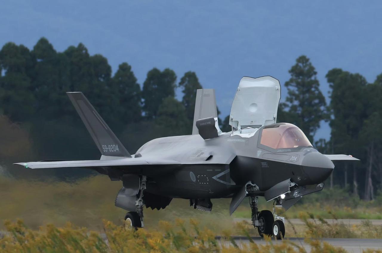 战机欣赏:空自新田原基地的F-35B进行露天整备。该机隐身涂料的维护仍然需要恒温