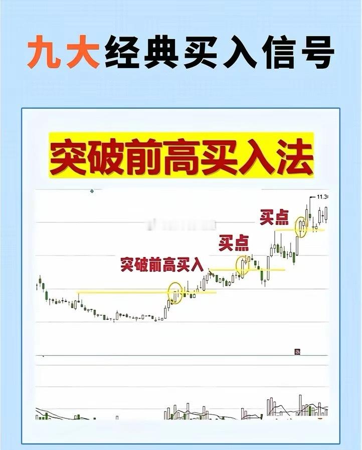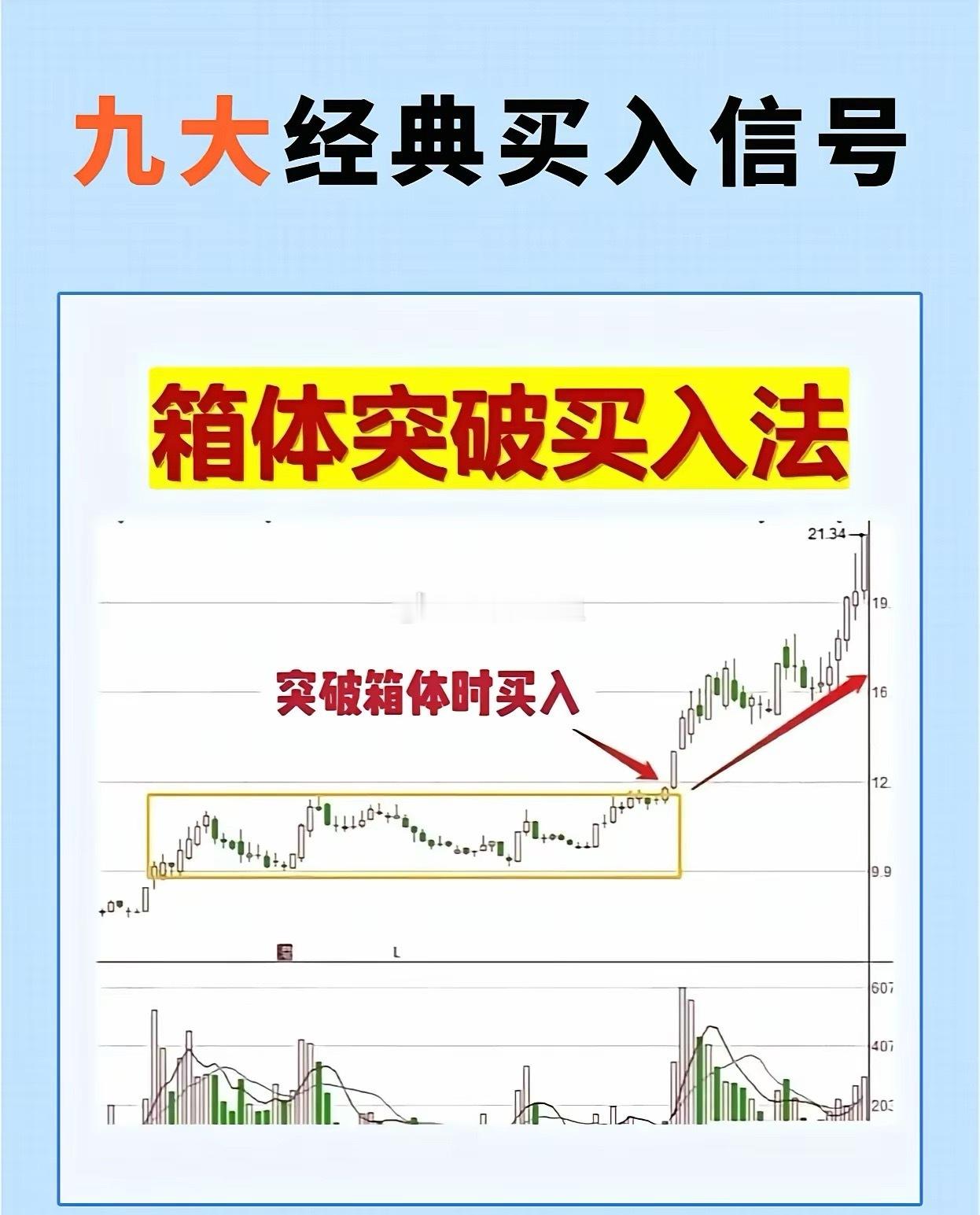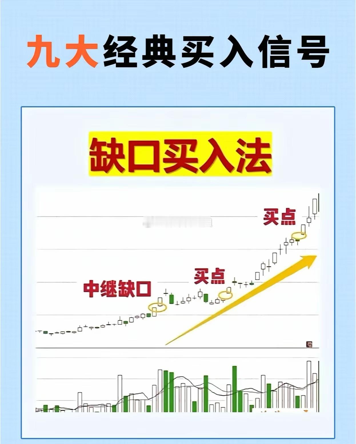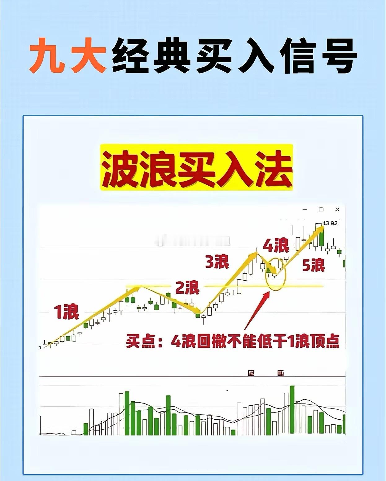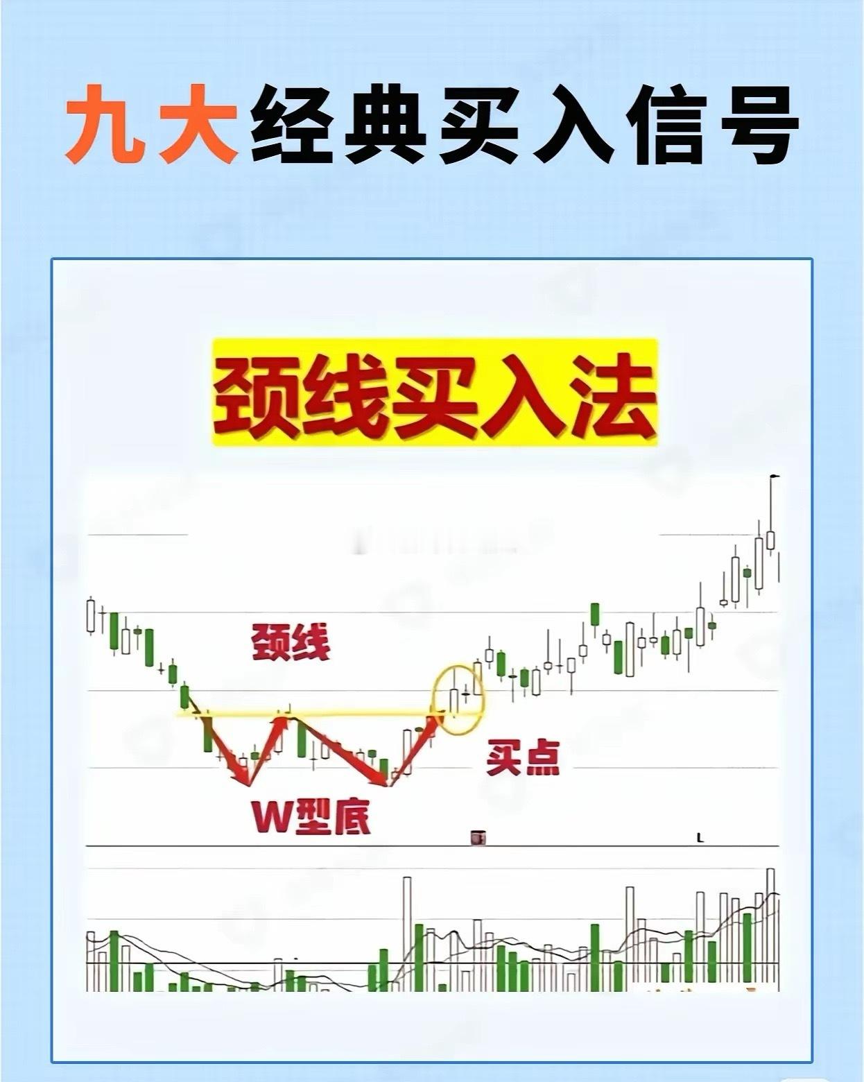 九大经典买入信号(收藏版)1、波浪买入法2、回踩支撑买入法3、颈线买入法4、突破前高买入法5、均线买入法6、上升趋势买入法7、箱体突破买入法8、布林带买入法9、缺口买入法会买的是徒弟,会卖的是师父。