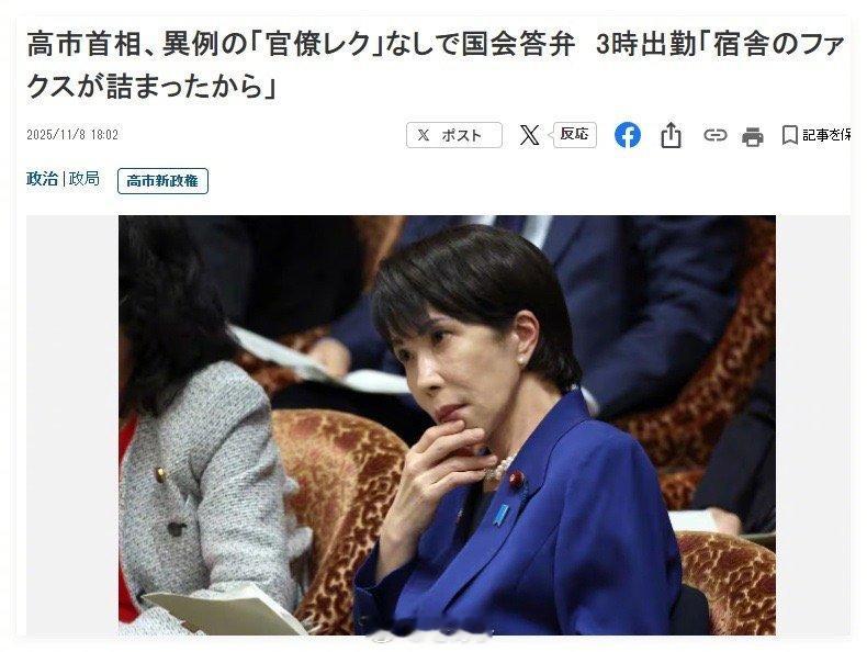 她的理由非常滑稽可笑,说是自己宿舍的传真机接收超过10页纸后就“卡住”了,这才不得不在凌晨3点跑去首相公邸处理工作和开会。且一开就是3个小时