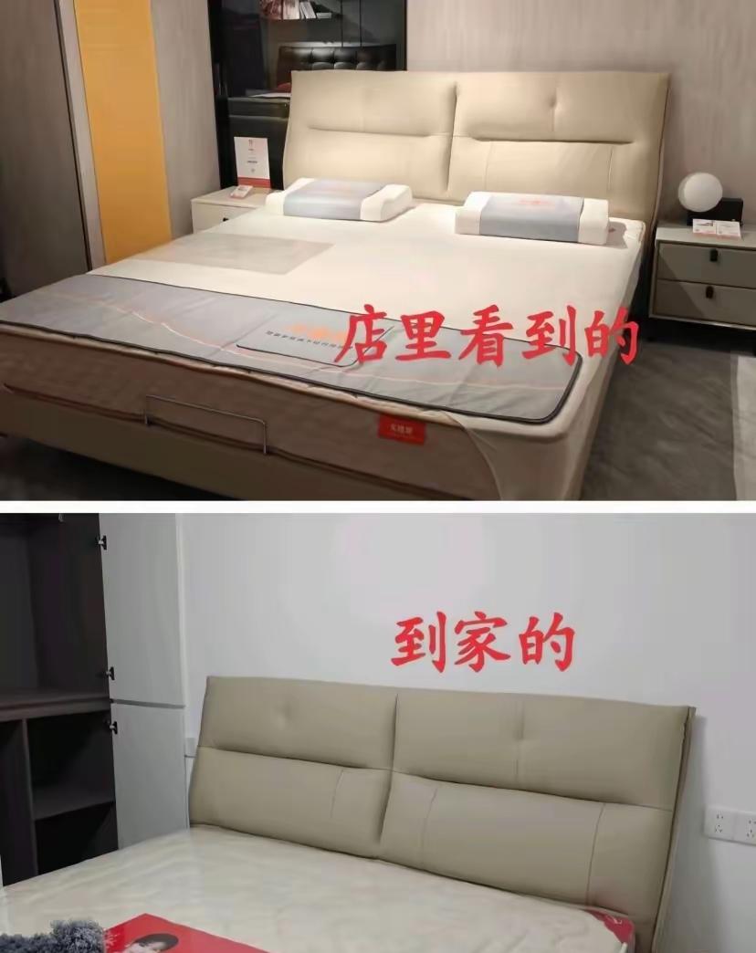同样的床,在商场看起来光鲜亮丽,一运回家却发现死气沉沉,这到底是怎么回事? 真心怀疑送错床了,但明明就是同一张床。 大家对此怎么看?