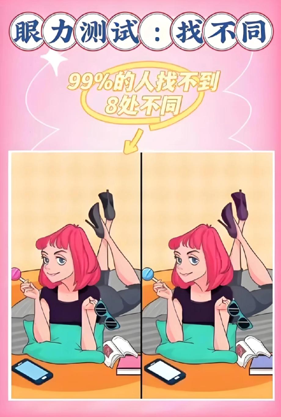 这找不同太狠了!99%的人找不到8处,我盯着看10分钟,连鞋子颜色都看懵了…